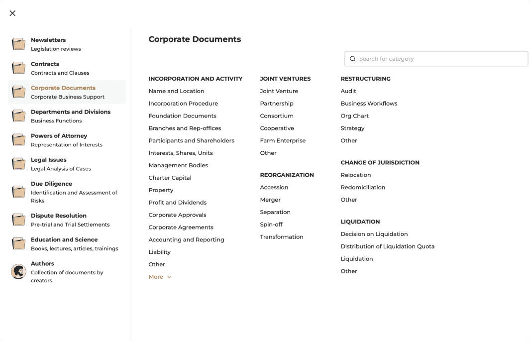 The platform tools are here to assist you in categorizing, searching, and transforming your legal materials into digital goods.