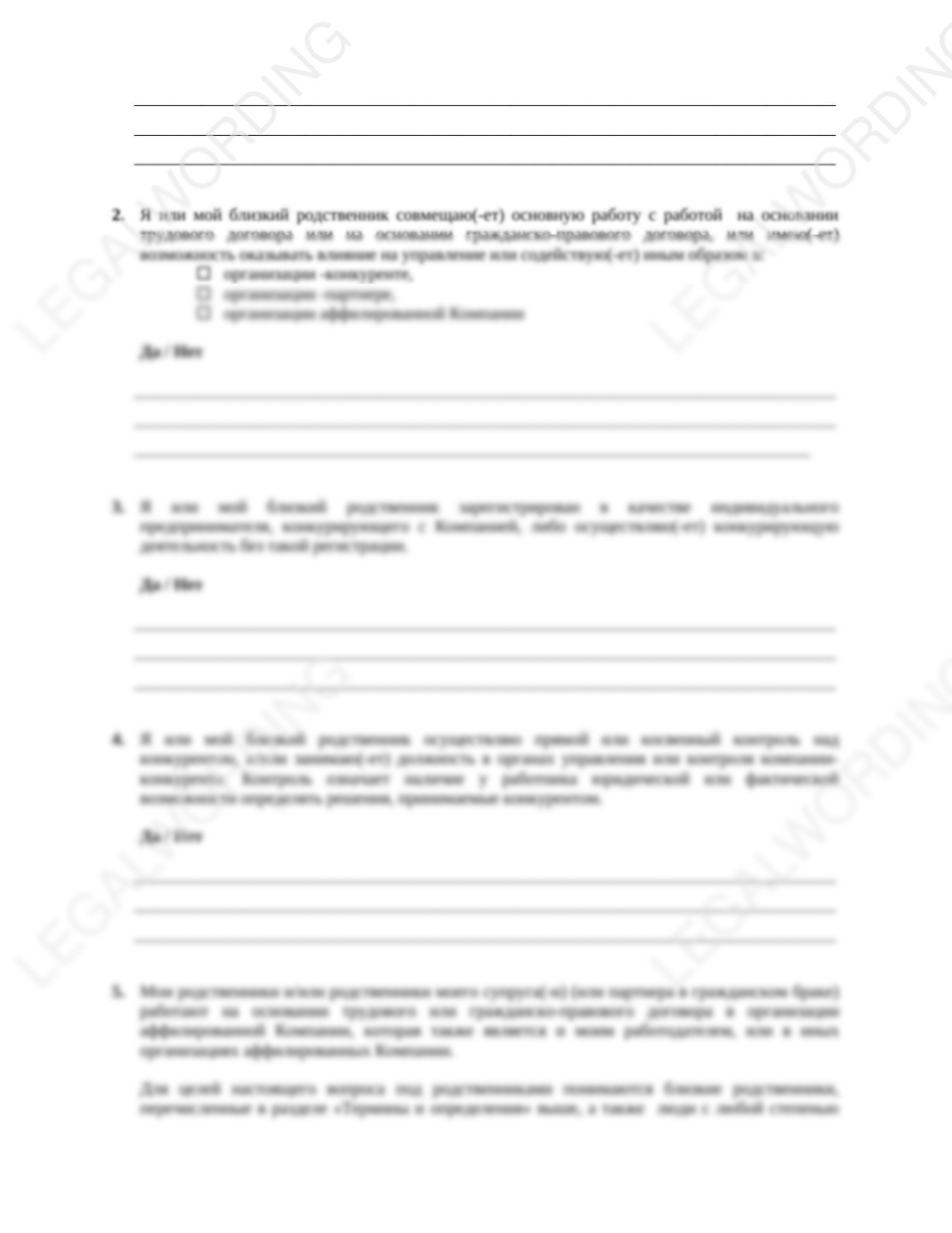 Декларация потенциального конфликта интересов работника представляет собой официальный документ, в котором сотрудник компании указывает возможные обстоятельства или ситуации, которые могут привести к конфликту интересов между его личными, финансовыми или профессиональными интересами и интересами работодателя.