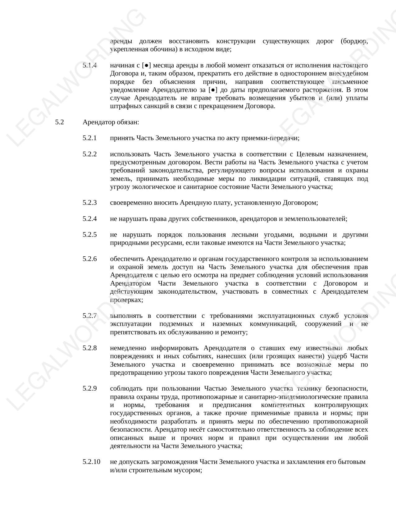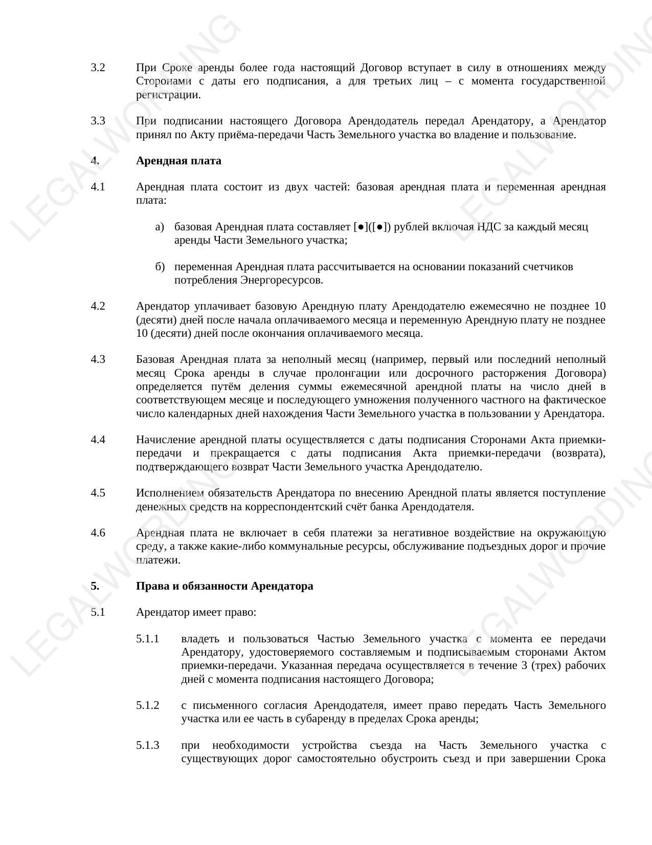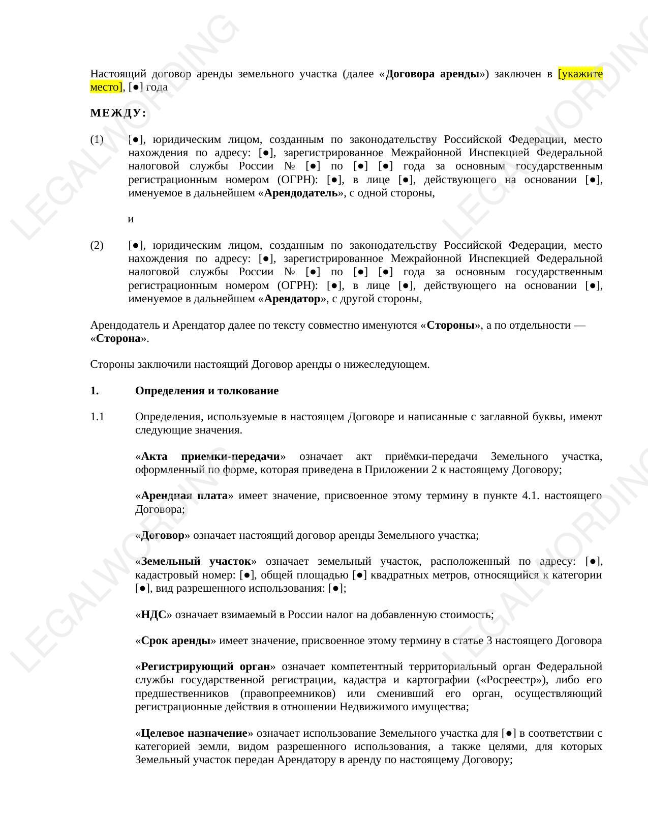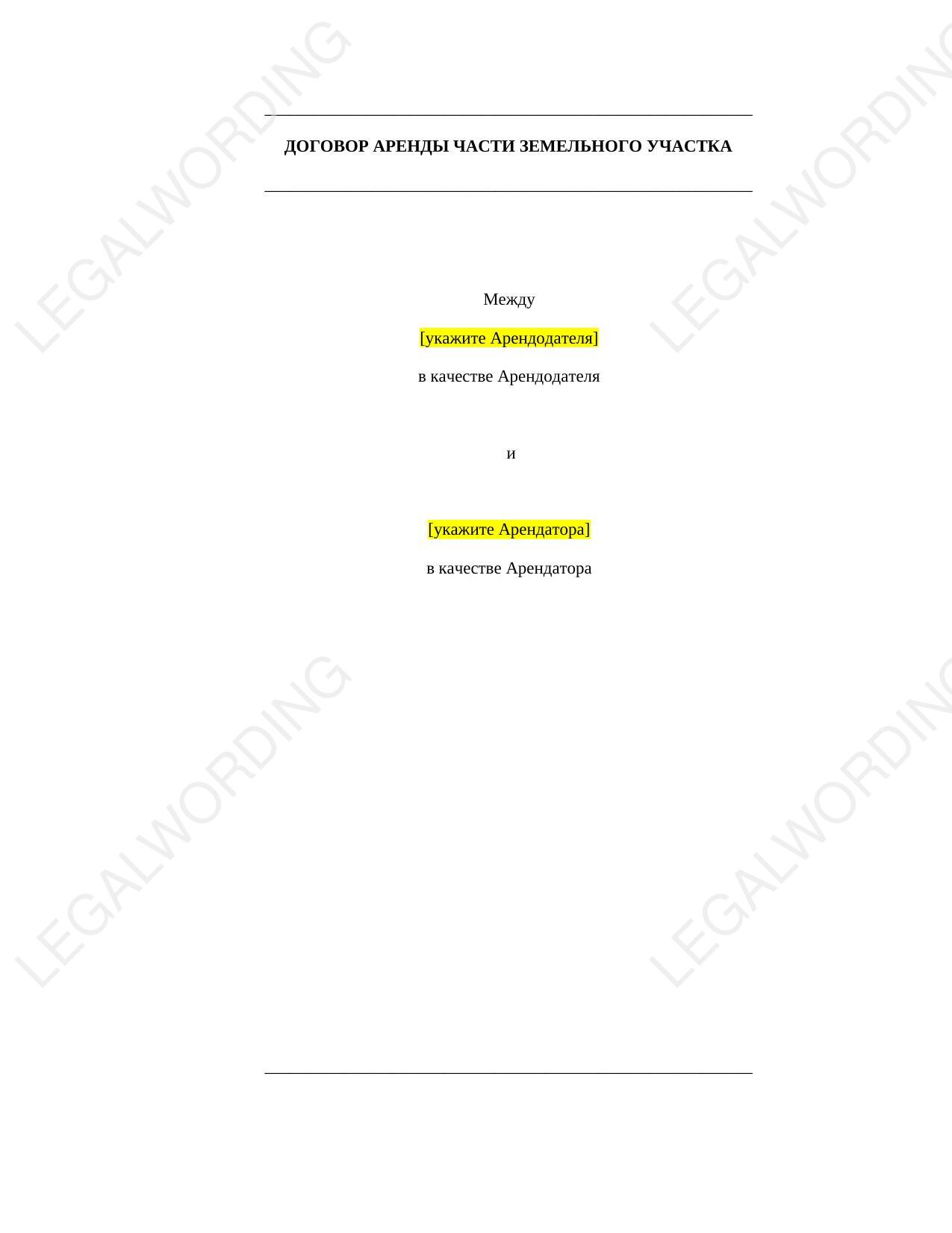 Особенностью этого шаблона является объект аренды, который представляет собой часть земельного участка.