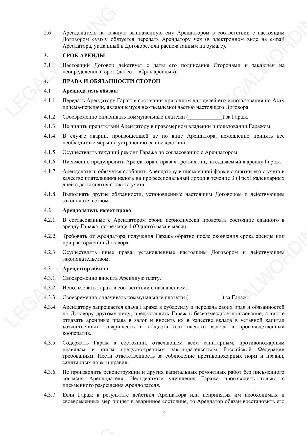 Договор аренды гаража-парковочного места - превью страницы 2