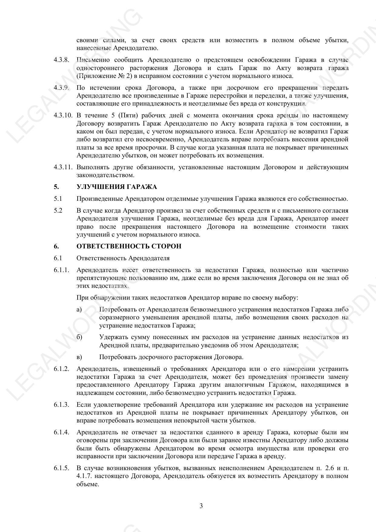 Договор аренды гаража-парковочного места - превью страницы 3