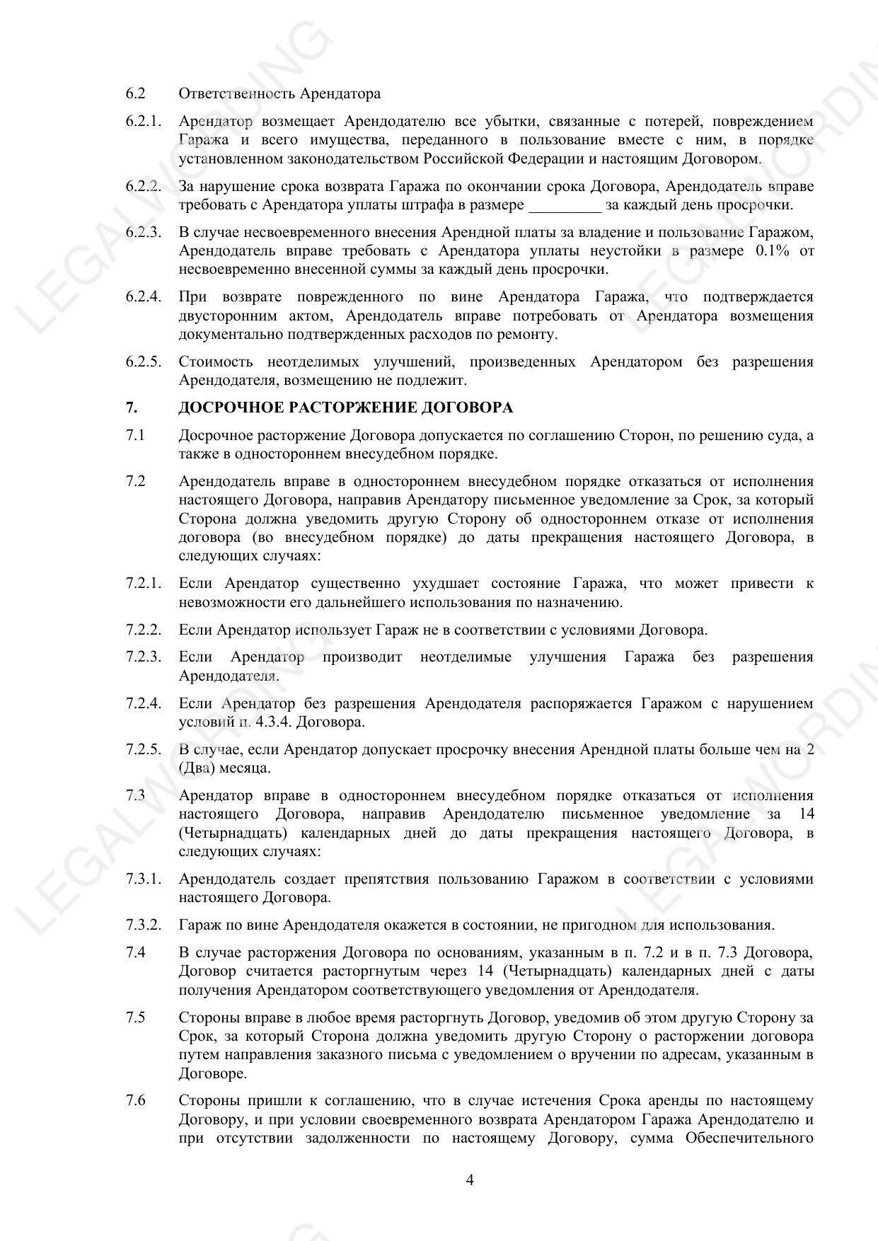Договор аренды гаража-парковочного места - превью страницы 4