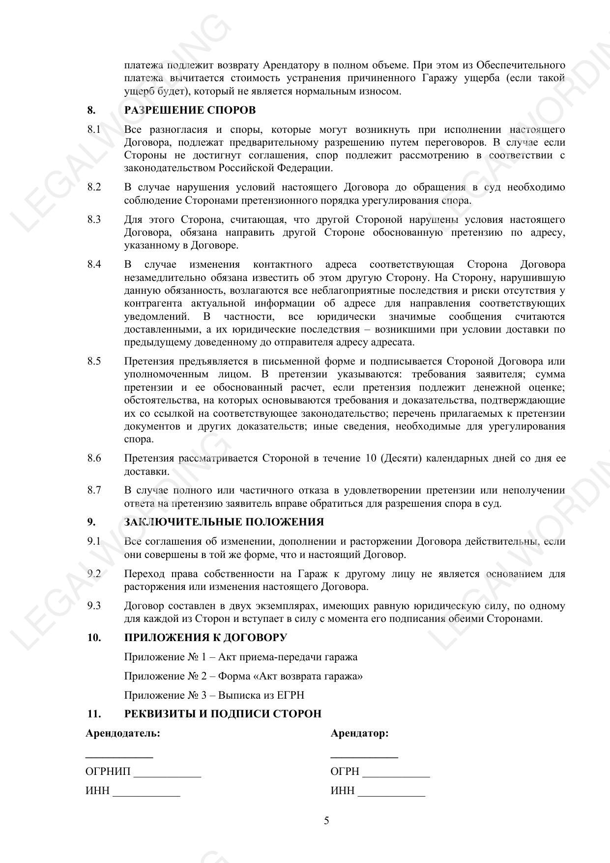 Договор аренды гаража-парковочного места - превью страницы 5