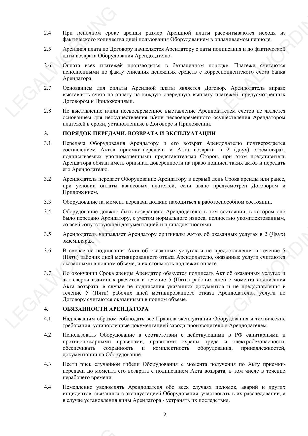 Договор аренды оборудования (рамочный) - превью страницы 2