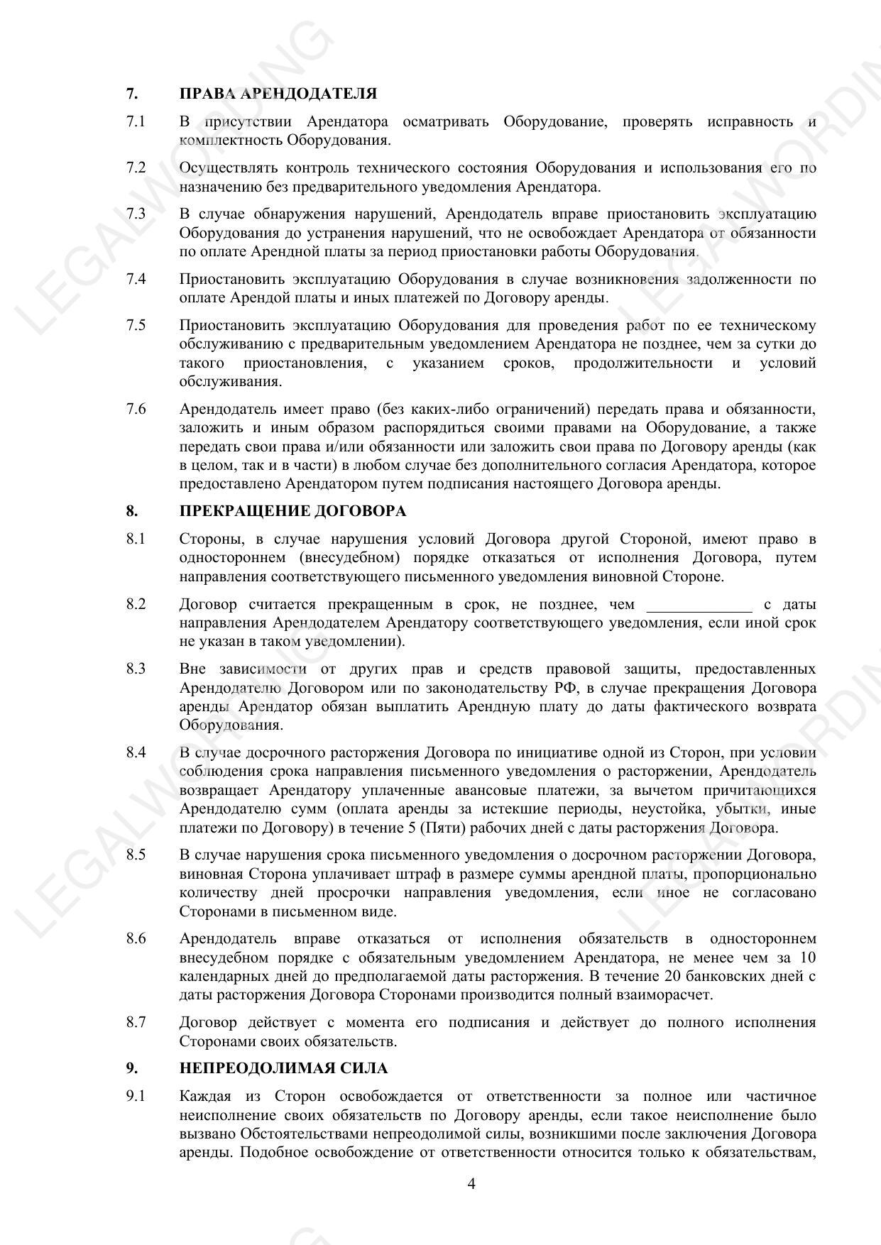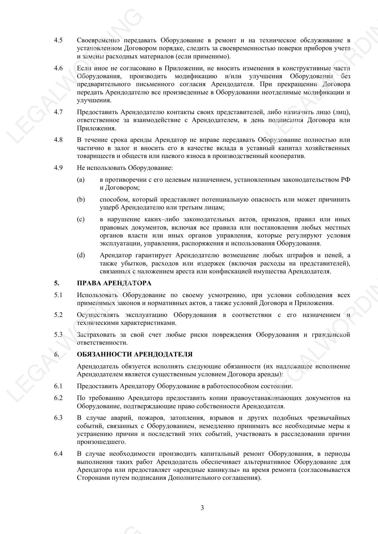 Договор аренды оборудования (рамочный) - превью страницы 4
