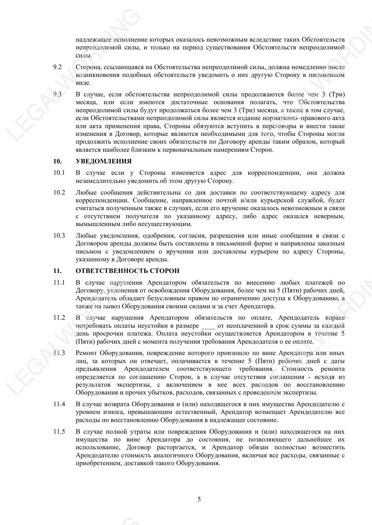 Договор аренды оборудования (рамочный) - превью страницы 5