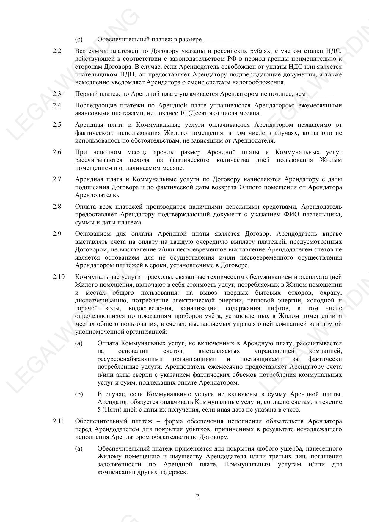 Договор аренды помещения для проживания - превью страницы 2
