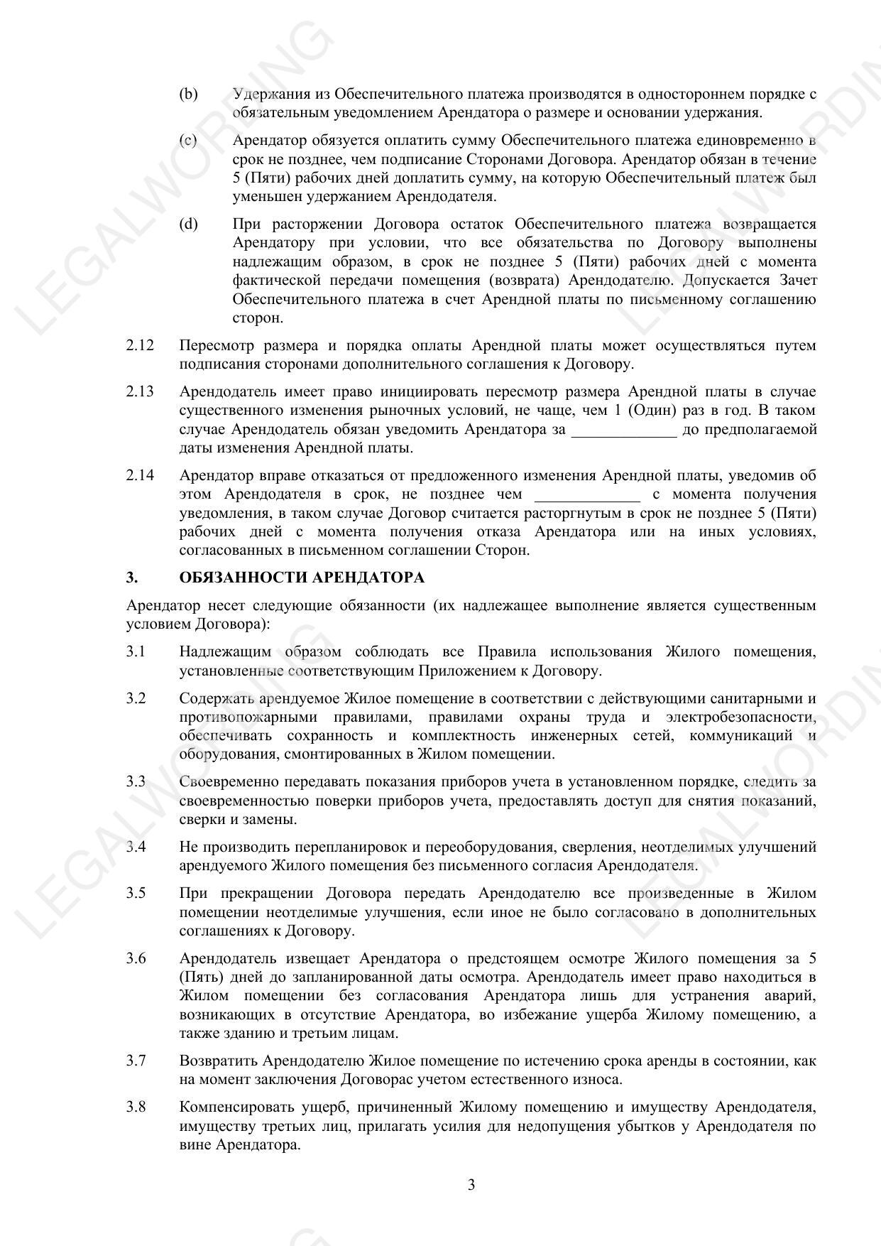 Договор аренды помещения для проживания - превью страницы 3