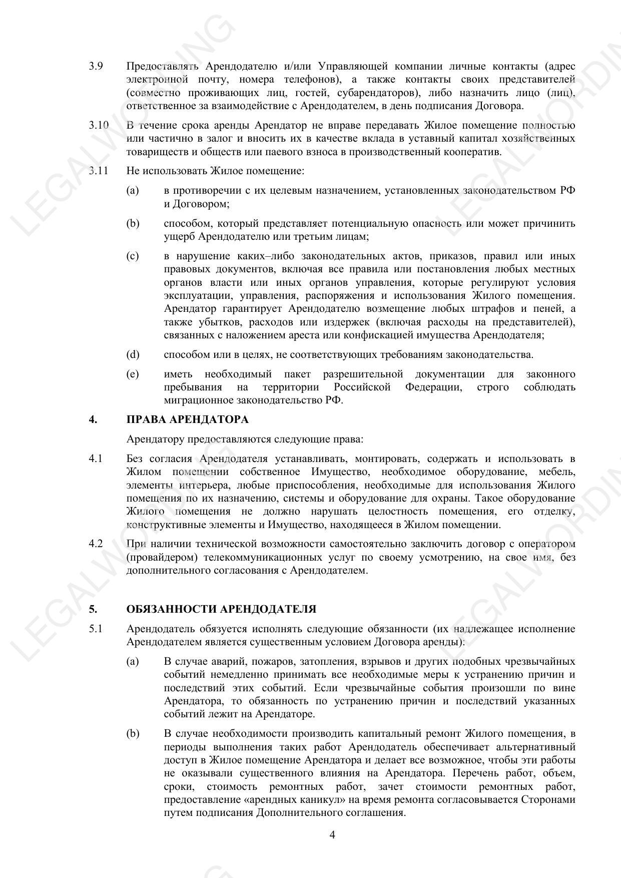 Договор аренды помещения для проживания - превью страницы 4