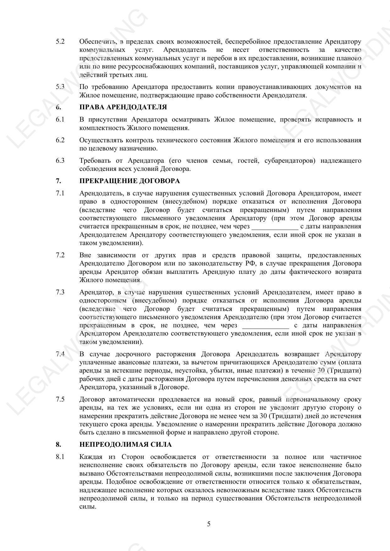 Договор аренды помещения для проживания - превью страницы 5