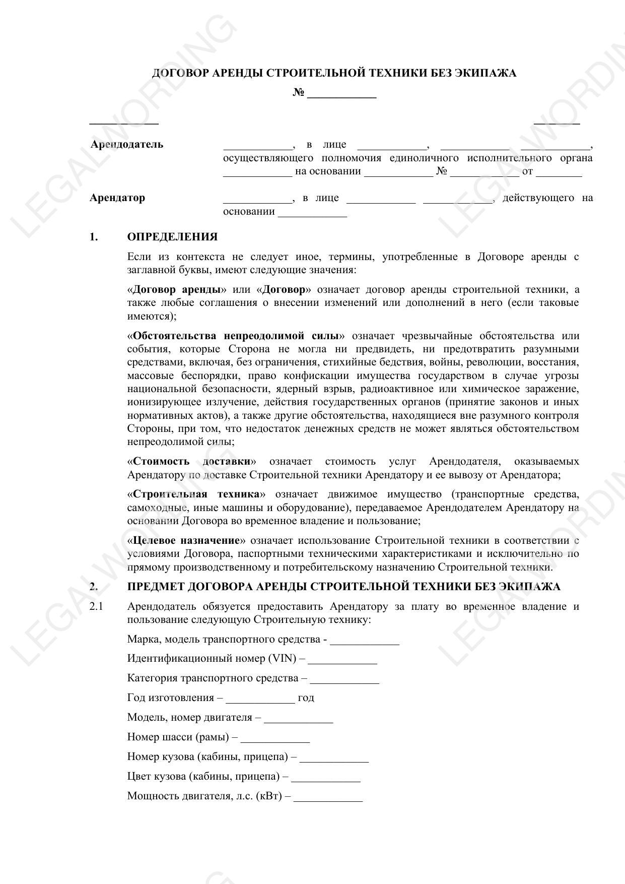 Договор аренды спецтехники без экипажа