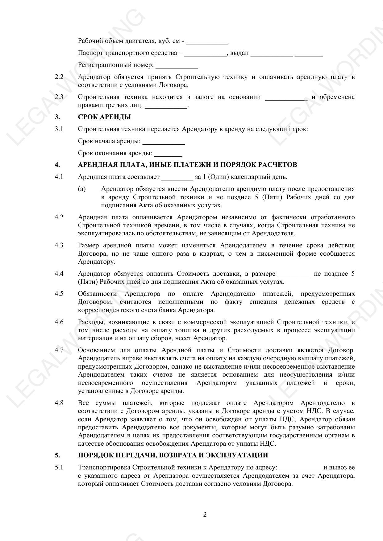 Договор аренды спецтехники без экипажа - превью страницы 2