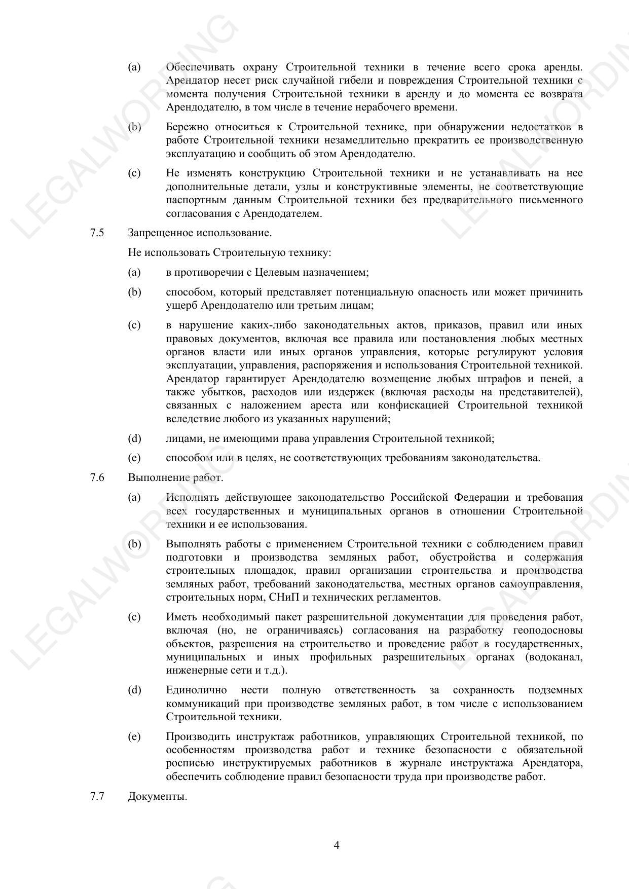 Договор аренды спецтехники без экипажа - превью страницы 4
