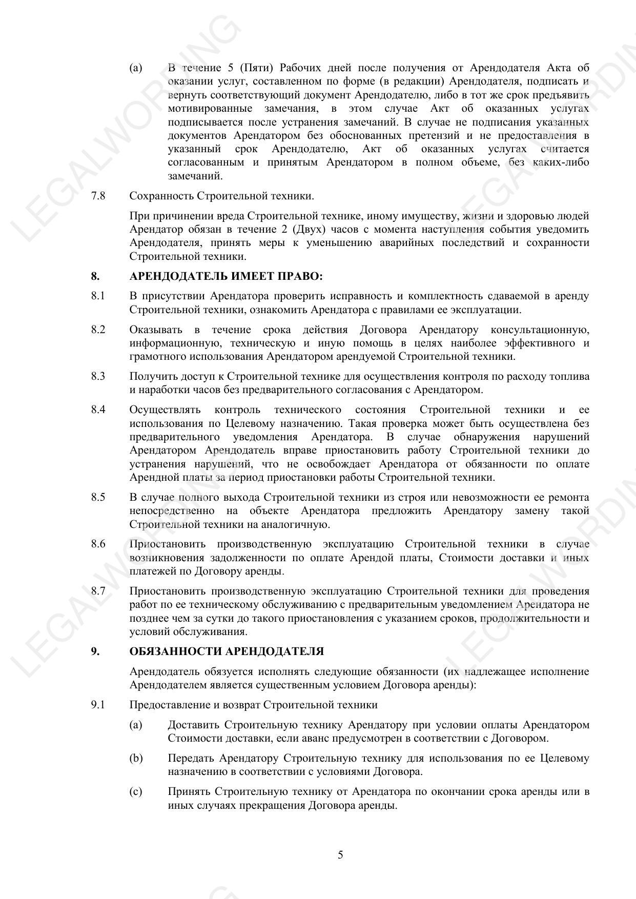 Договор аренды спецтехники без экипажа - превью страницы 5