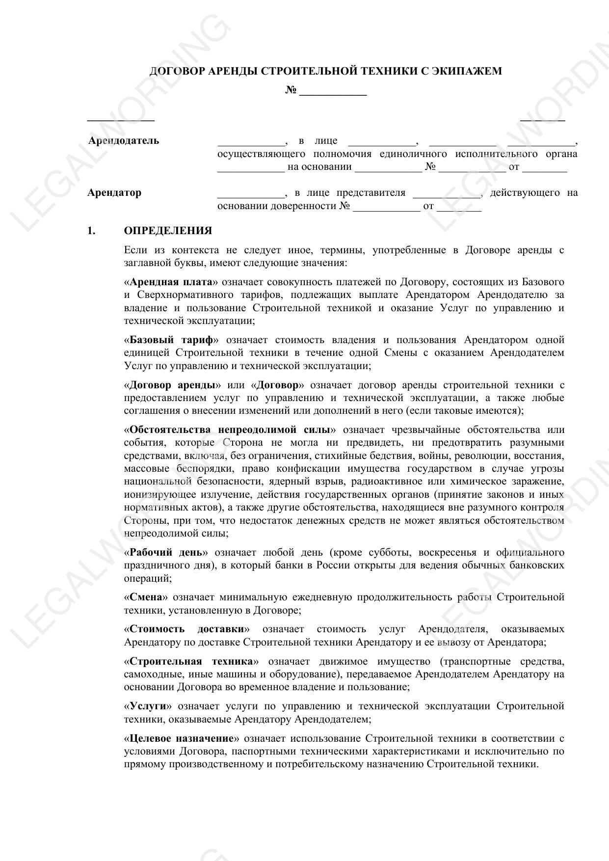 Договор аренды спецтехники с экипажем - превью страницы 1
