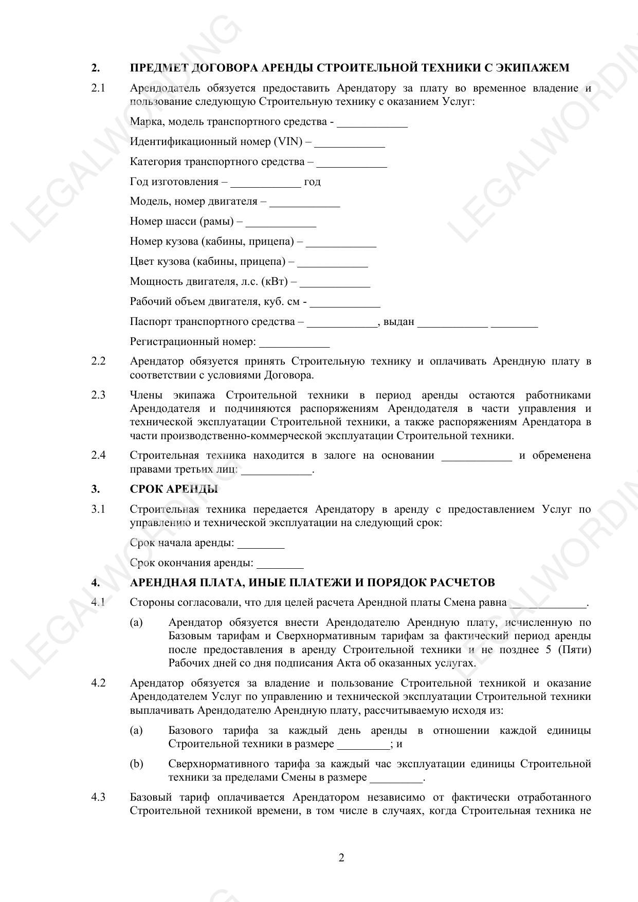 Договор аренды спецтехники с экипажем - превью страницы 2