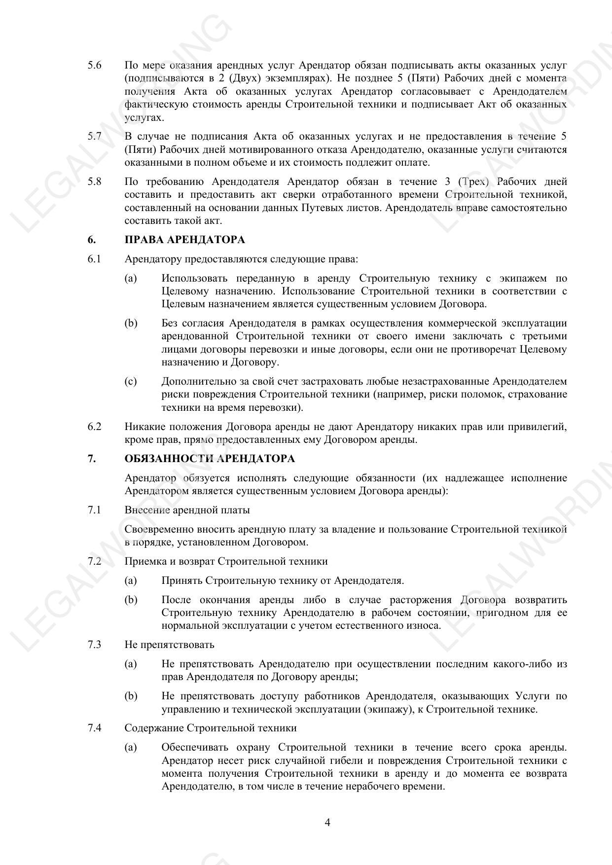 Договор аренды спецтехники с экипажем - превью страницы 4