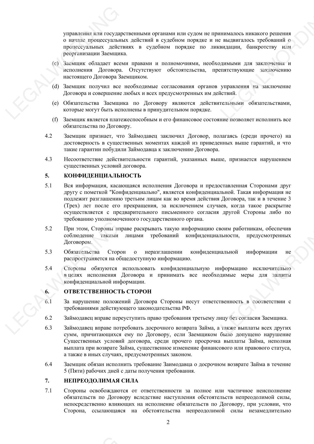 Договор беспроцентного займа - превью страницы 2
