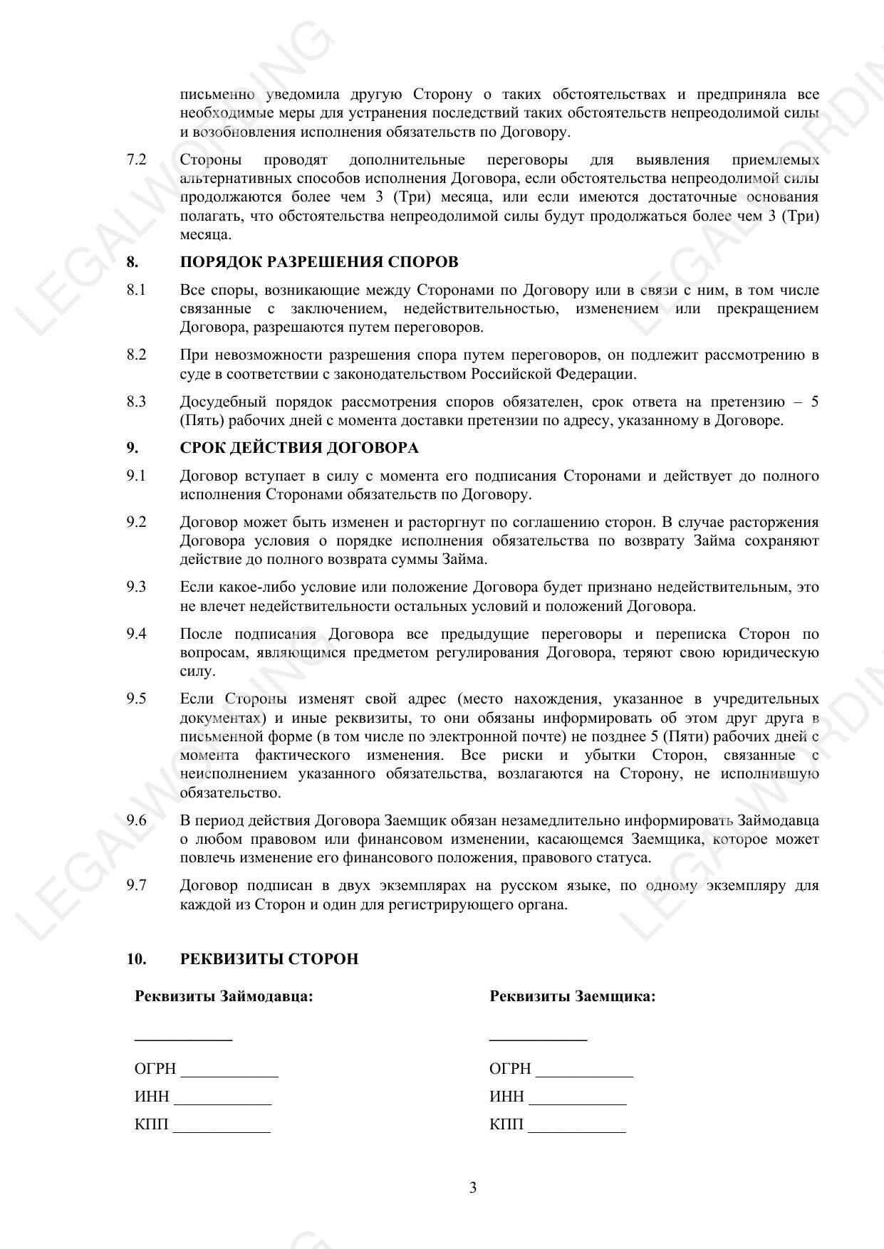 Договор беспроцентного займа - превью страницы 3