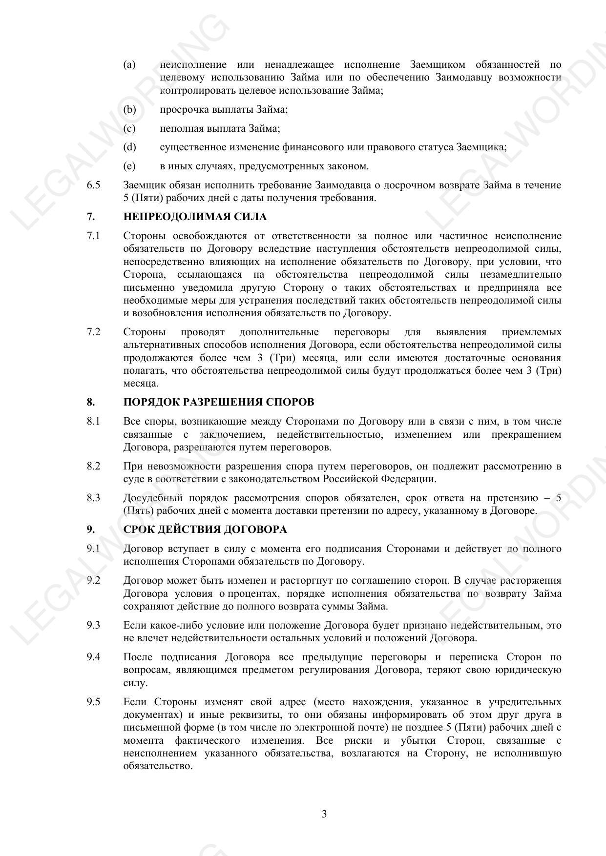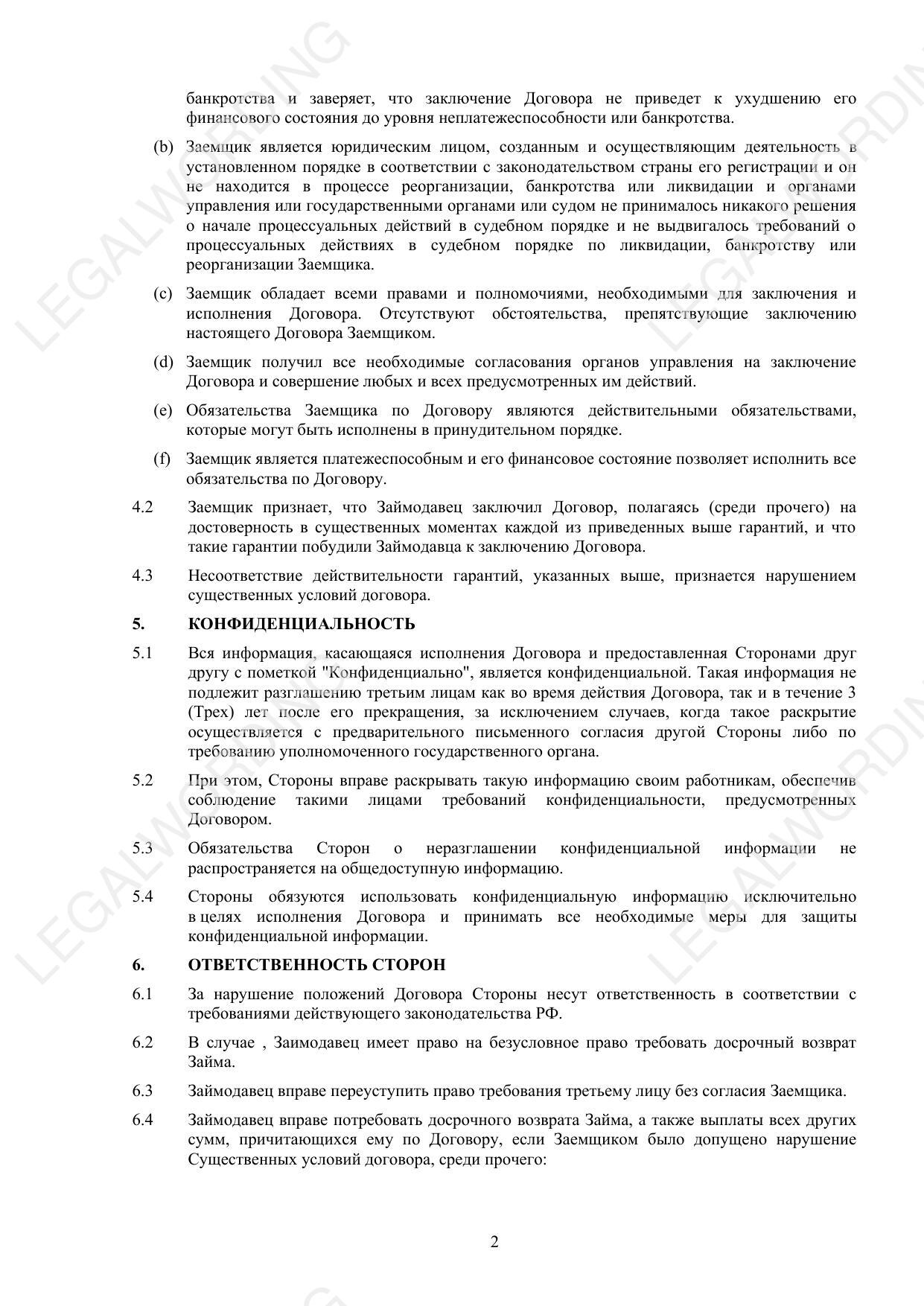 Ответственность сторон - меры ответственности за нарушение условий договора и возможность досрочного возврата займа.