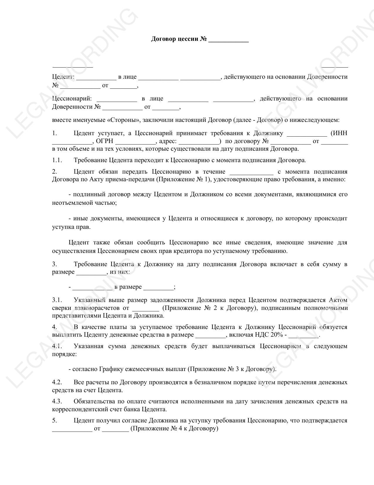 Договор цессии двусторонний
