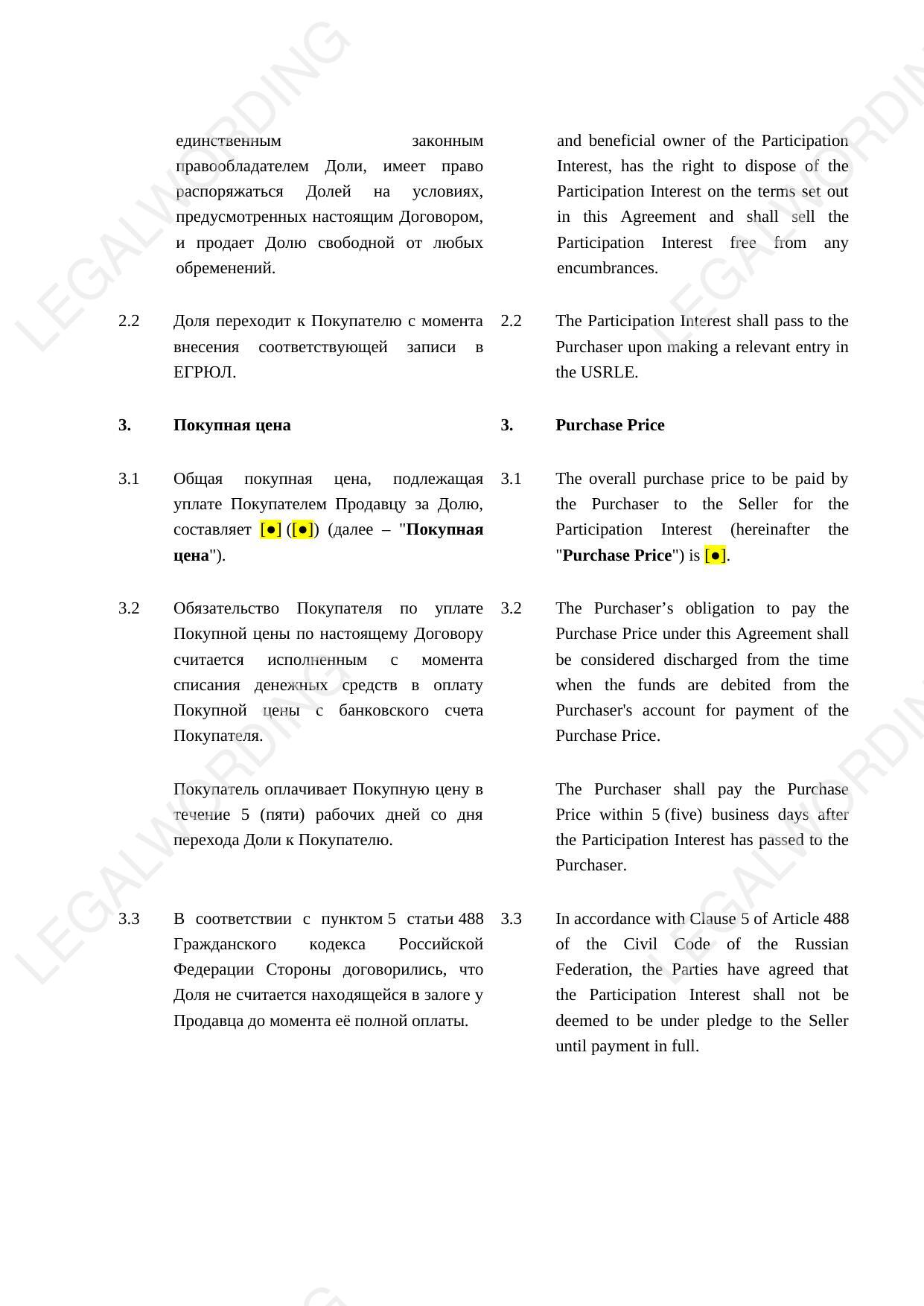 | Договор купли-продажи | Сбалансирован |