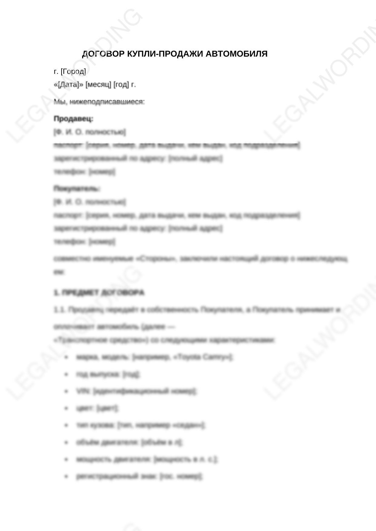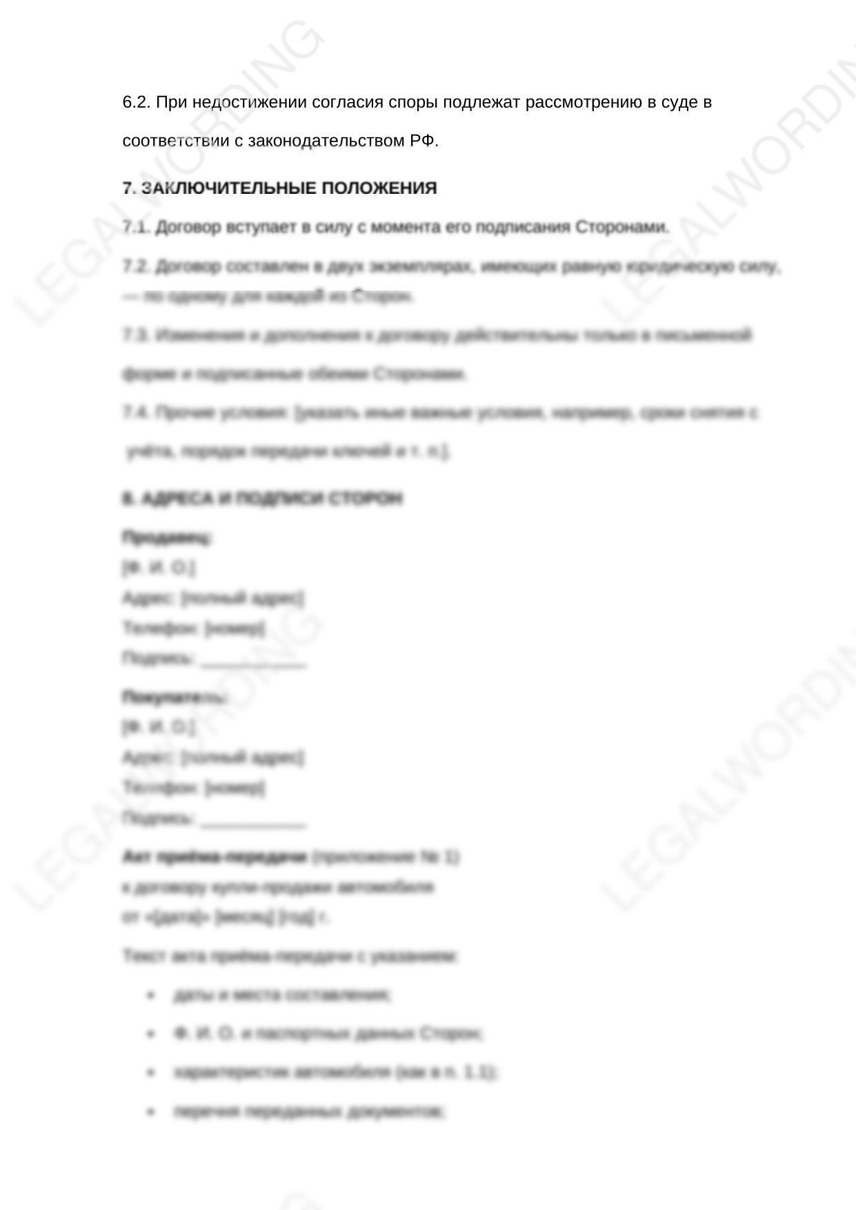 При продаже/покупке автомобиля имеются страхи оформить сделку с ошибкой. Данный договор поможет избежать ошибок, является юридически грамотным и проверенным в суде.