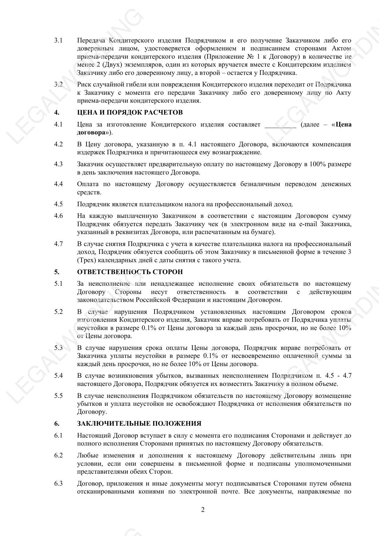 Договор на изготовление кондитерских изделий - превью страницы 2