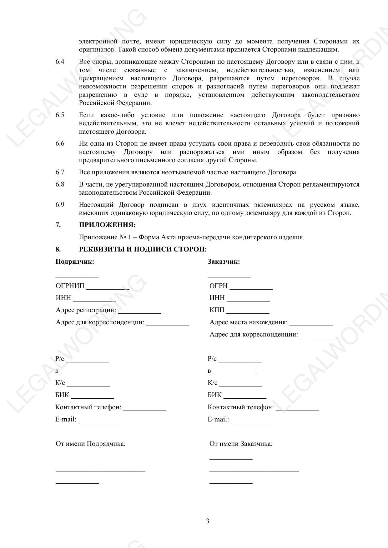 Договор на изготовление кондитерских изделий - превью страницы 3