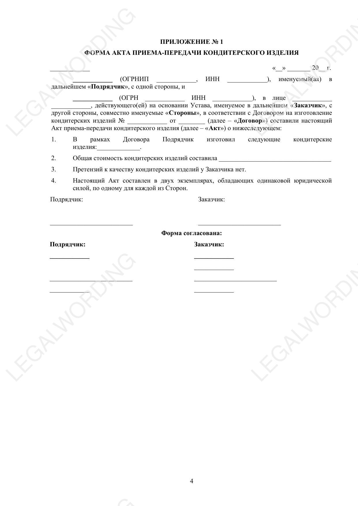 Договор на изготовление кондитерских изделий