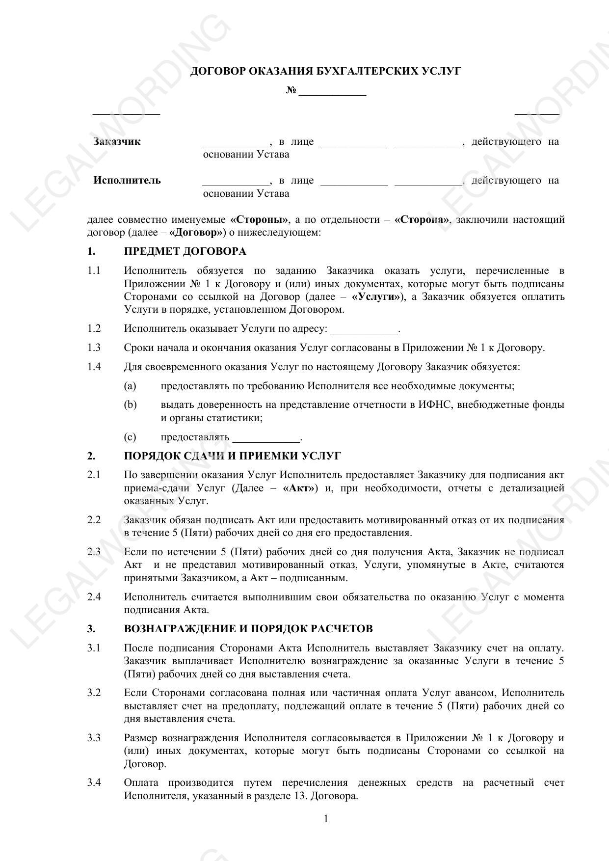 Договор оказания бухгалтерских услуг - превью страницы 1