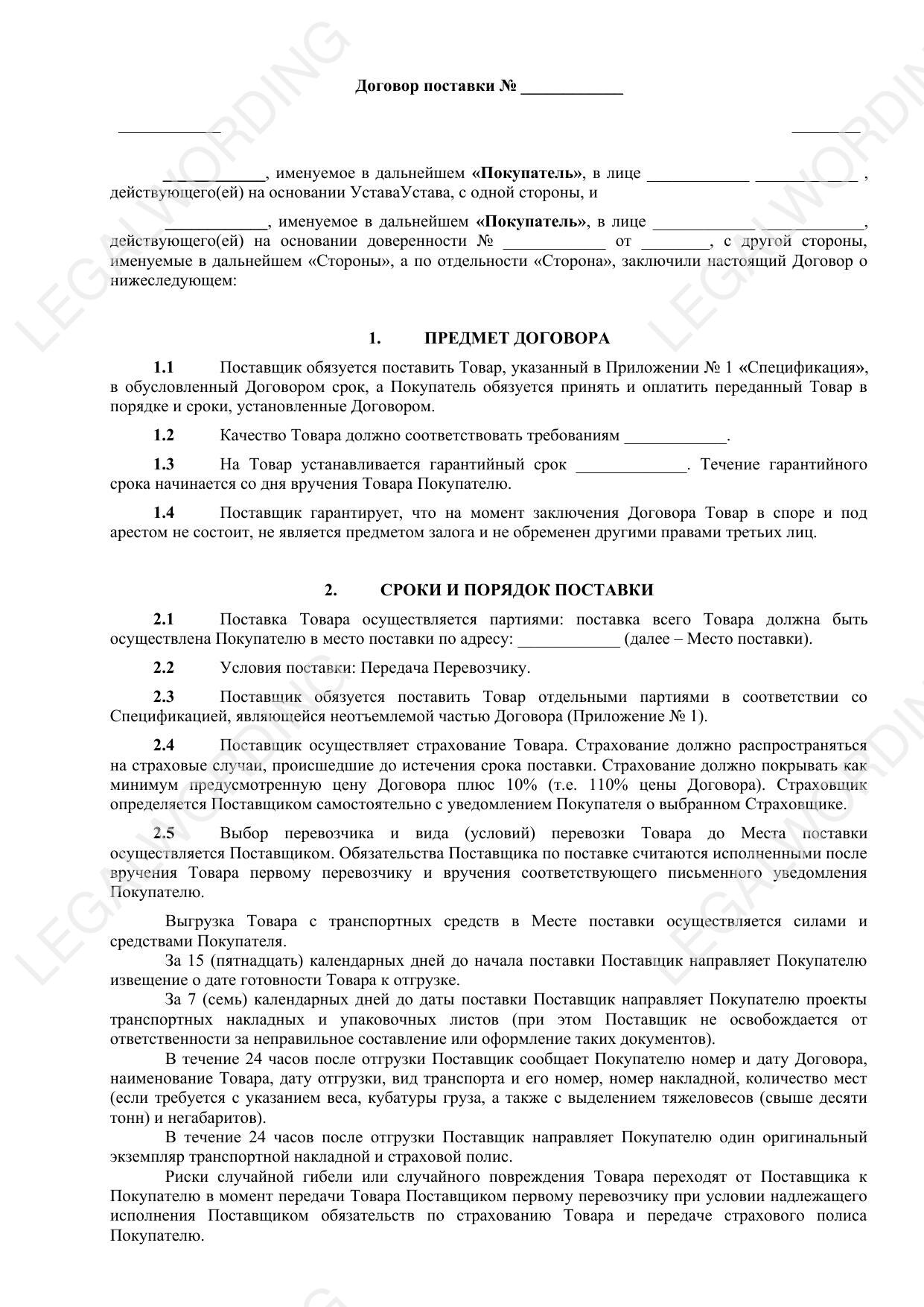 Договор поставки - превью страницы 1