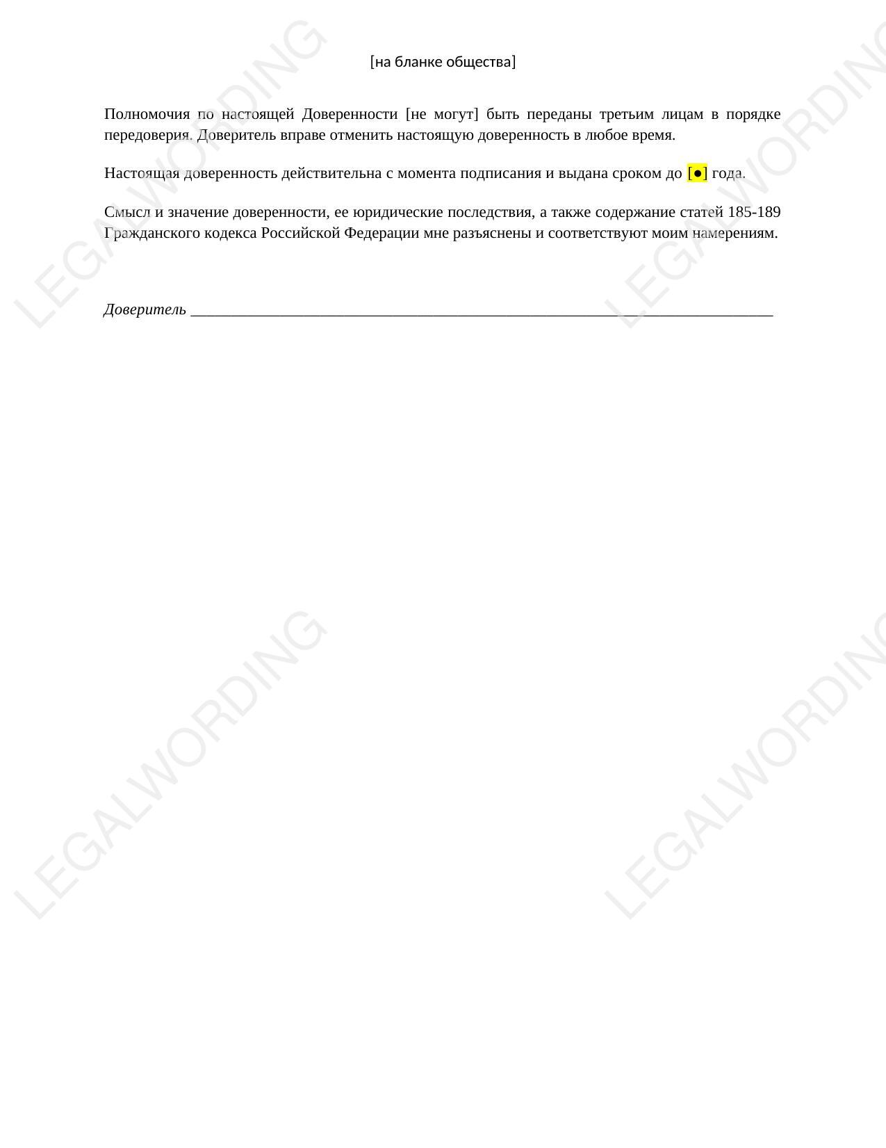 Краткое описание полномочий по доверенности: