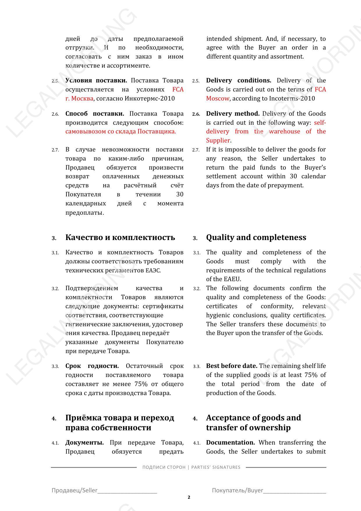 | Договор поставки | Сбалансирован |
