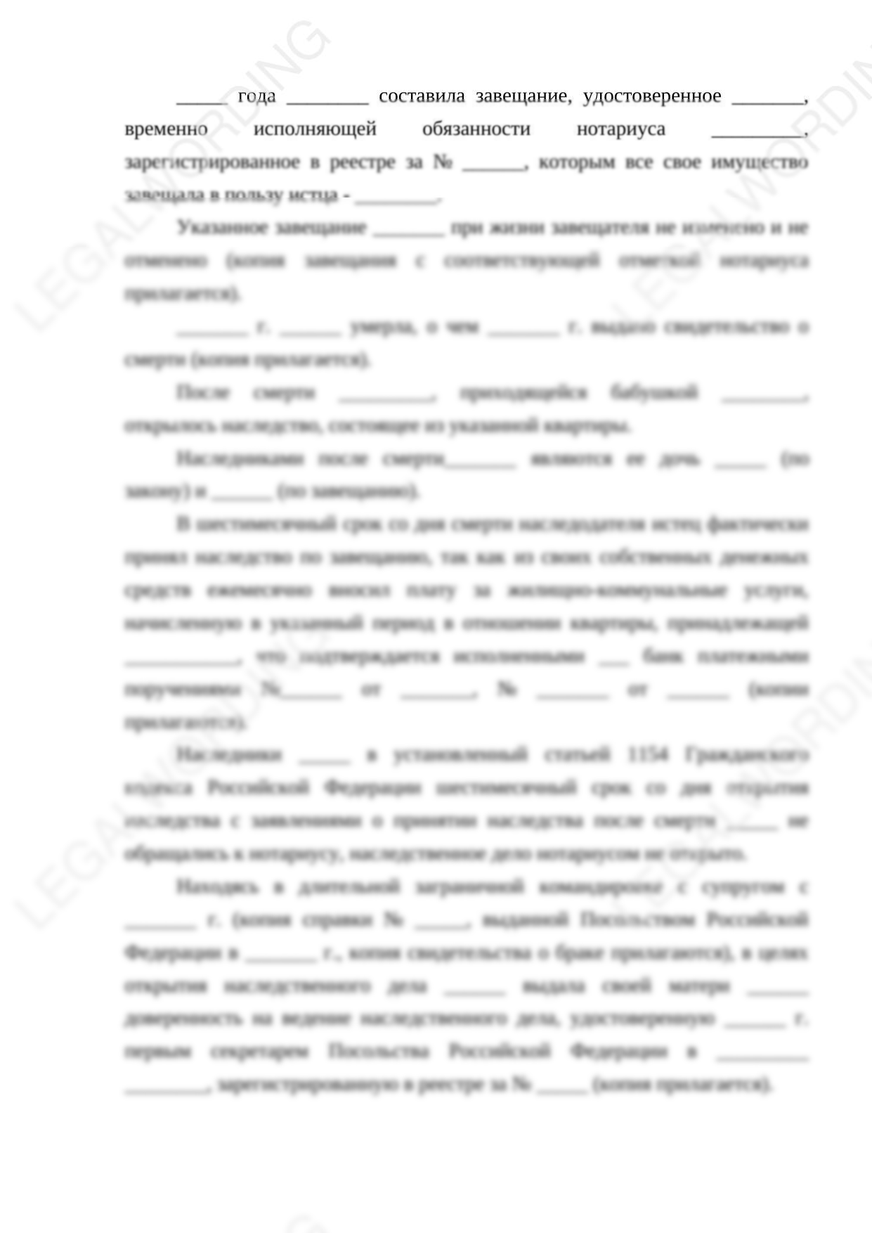 Иск для тех, кто опоздал с принятием наследства 6 месяцев! Иск поможет восстановить срок принятия наследства и принять его.