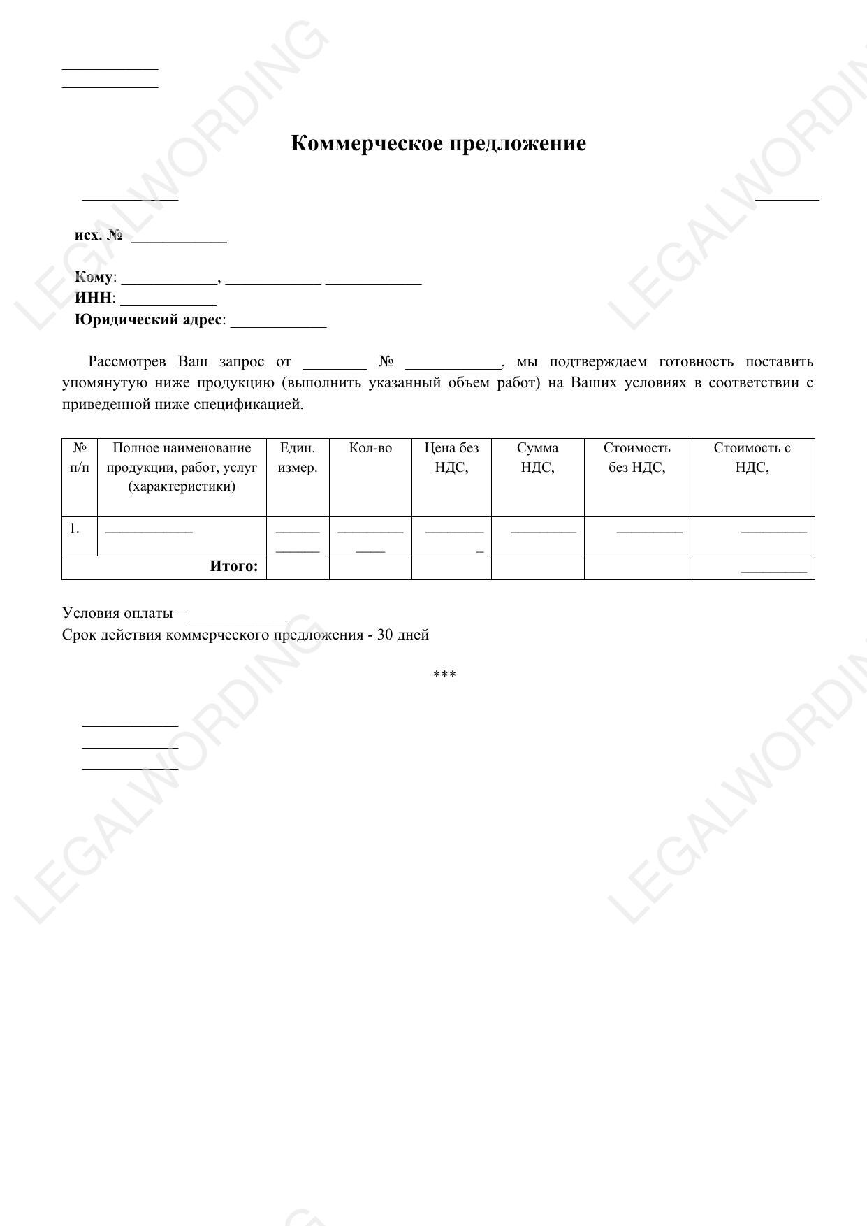 8. Срок действия коммерческого предложения - период, в течение которого предложение остается актуальным, обычно 30 дней.