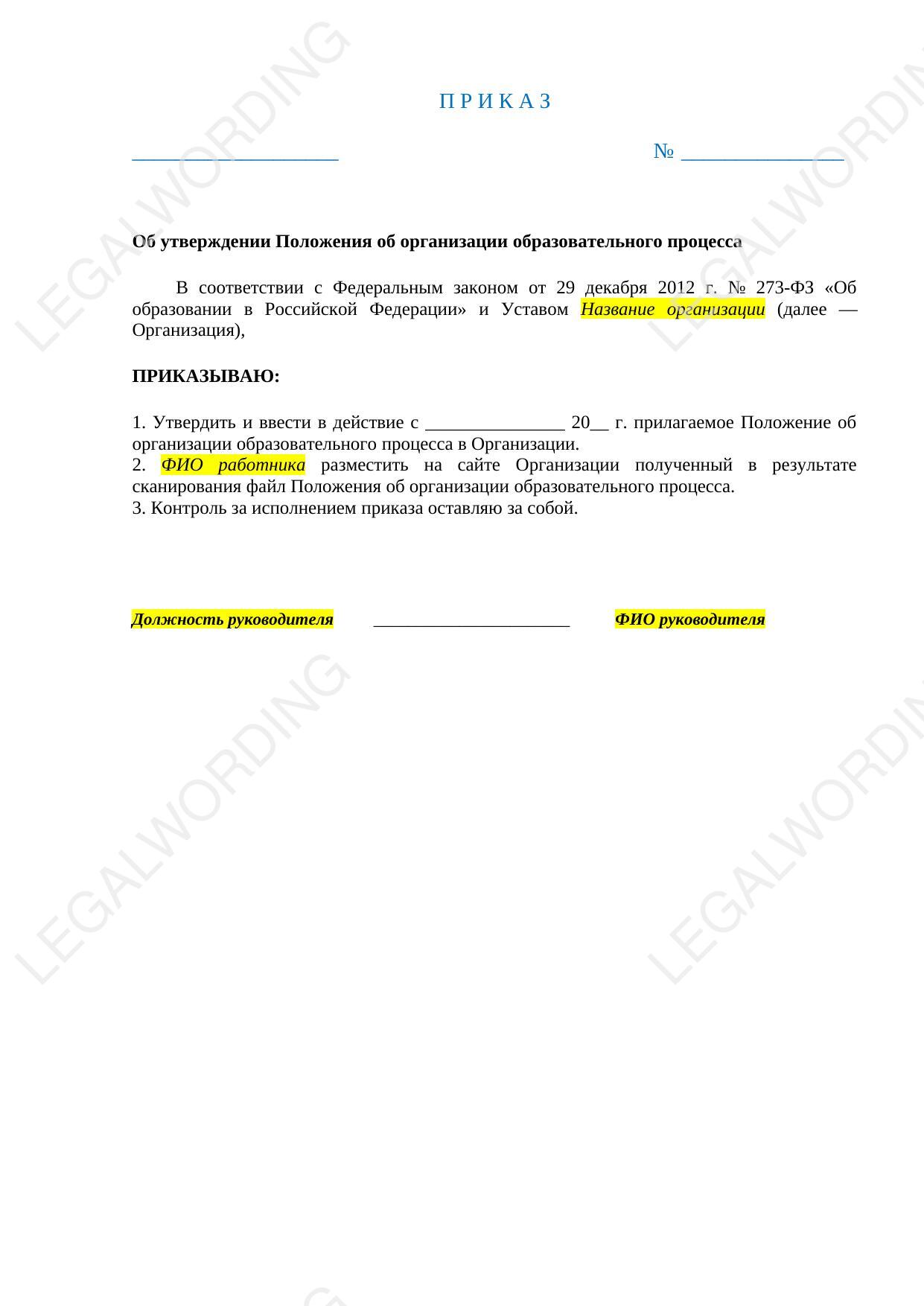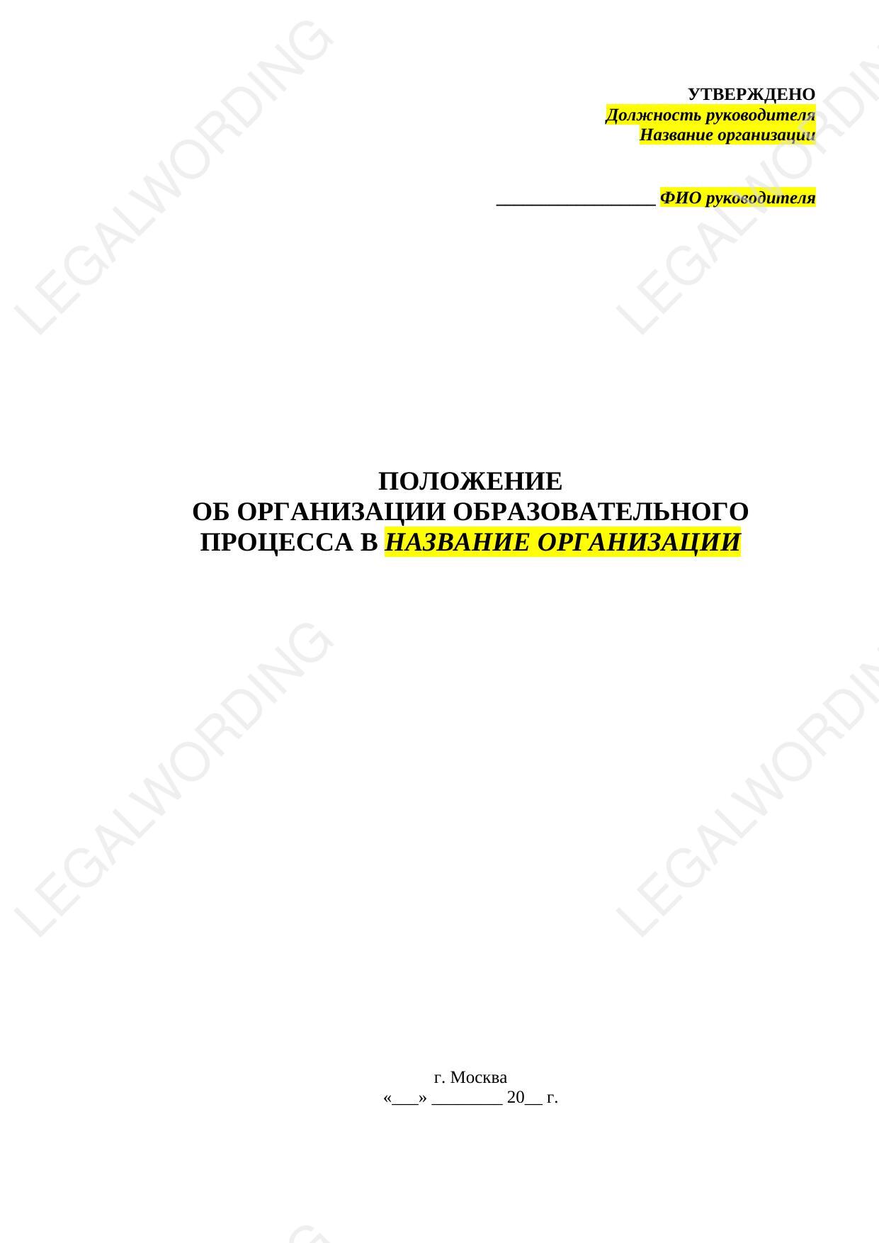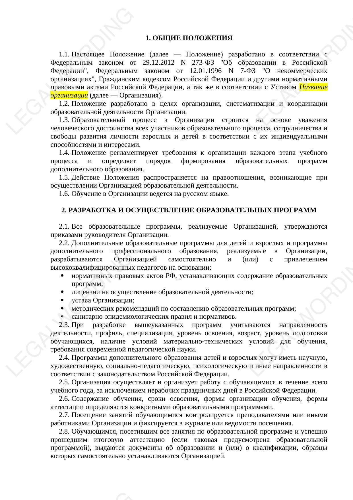 Положение регламентирует требования к организации каждого этапа учебного процесса и определяет порядок формирования образовательных программ дополнительного образования. Снабжено приказом об утверждении.