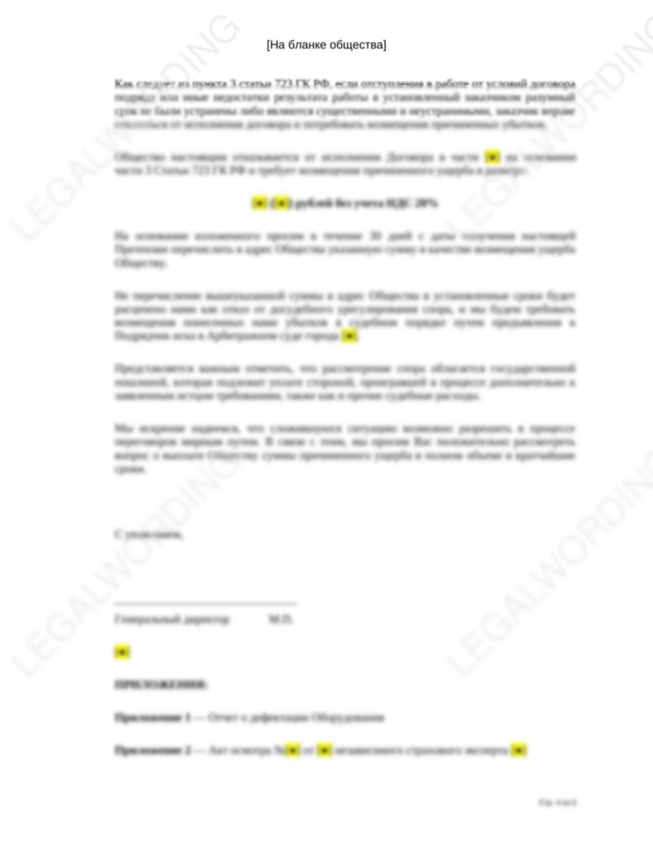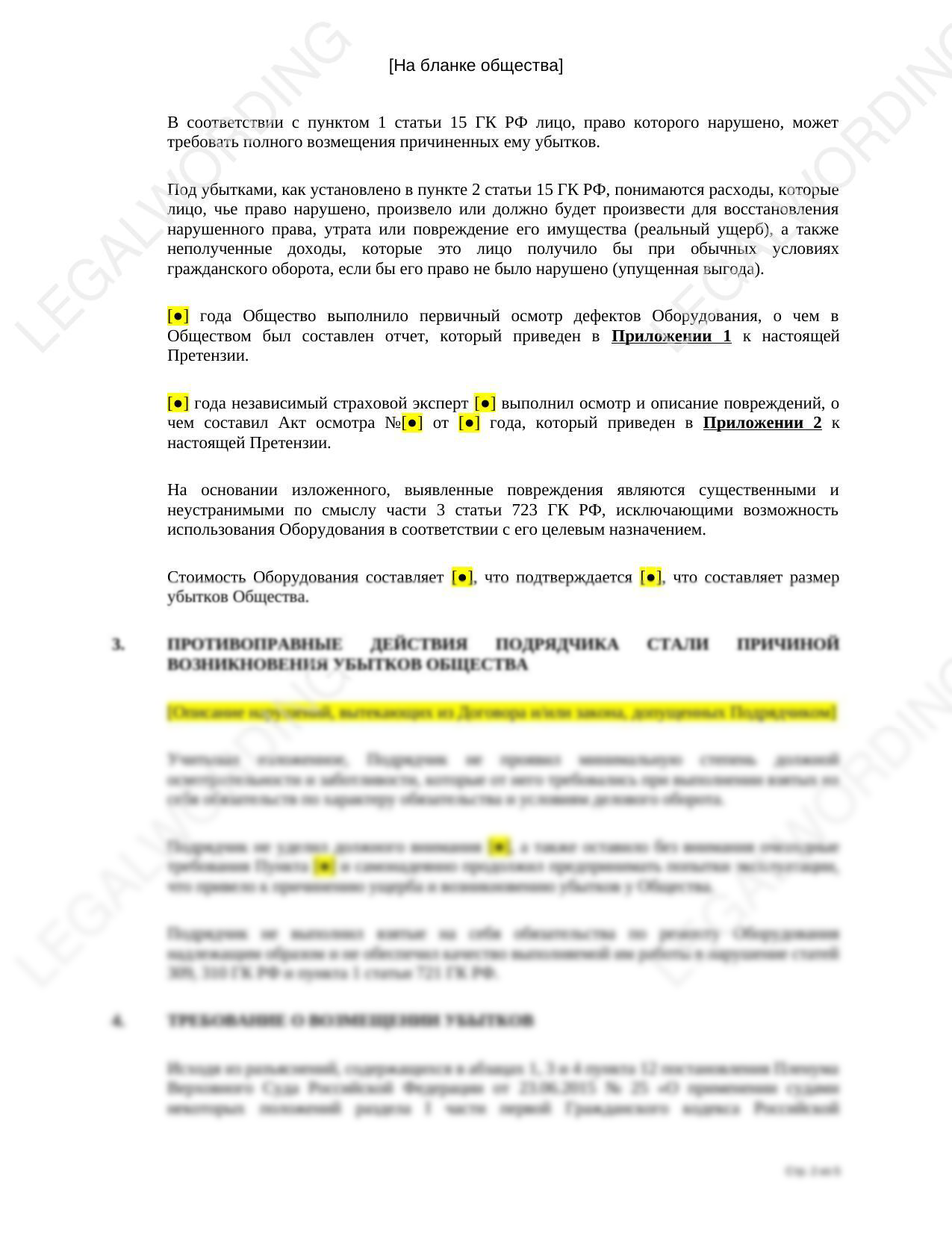 Подрядчик причинил вред оборудованию заказчика, которое взял у заказчика в ремонт. Заказчик в претензии приводит обстоятельства причинения вреда и требует возмещение убытков.