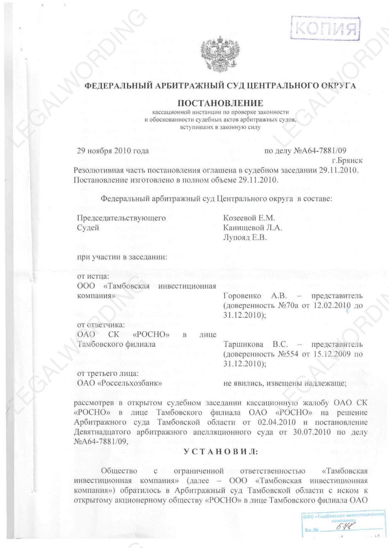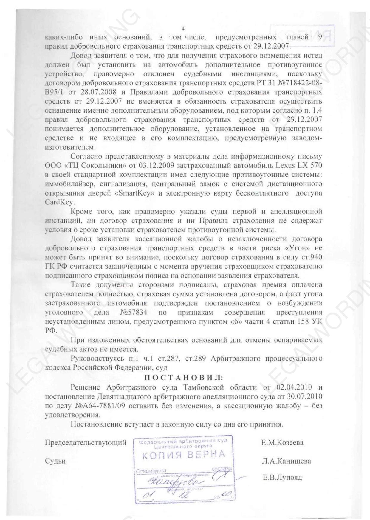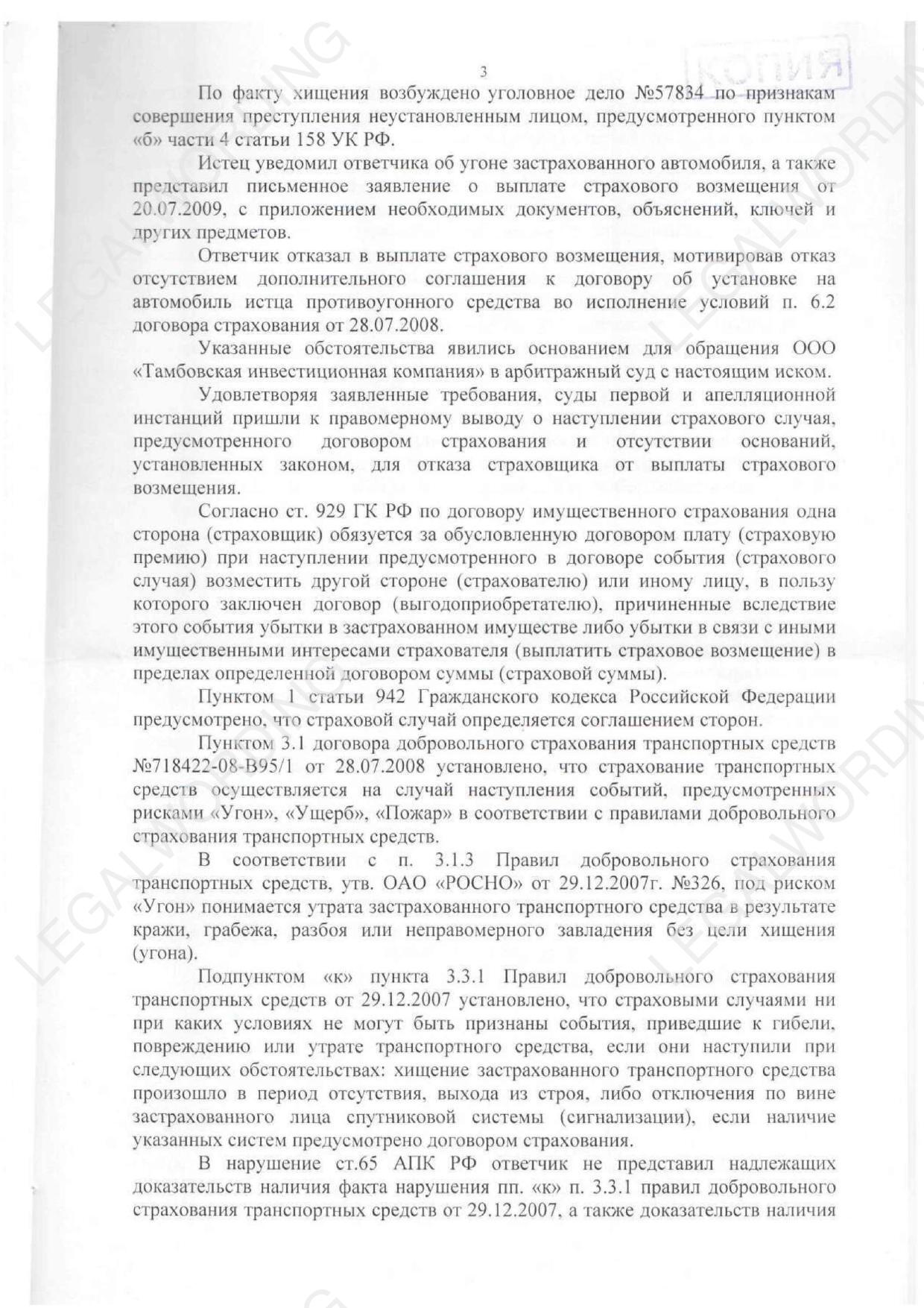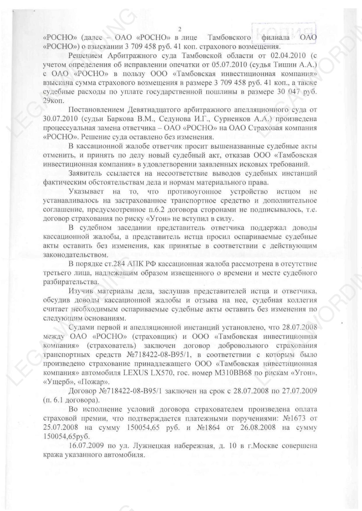 Лексус LX 570 был застрахован в РОСНО по риску "Угон". Лексус угнали. Обратились за выплатой страховой суммы и получили отказ. РОСНО сопротивлялось в деле А64-7881/2009 всеми доступными способами, но мы их победили во всех инстанциях.