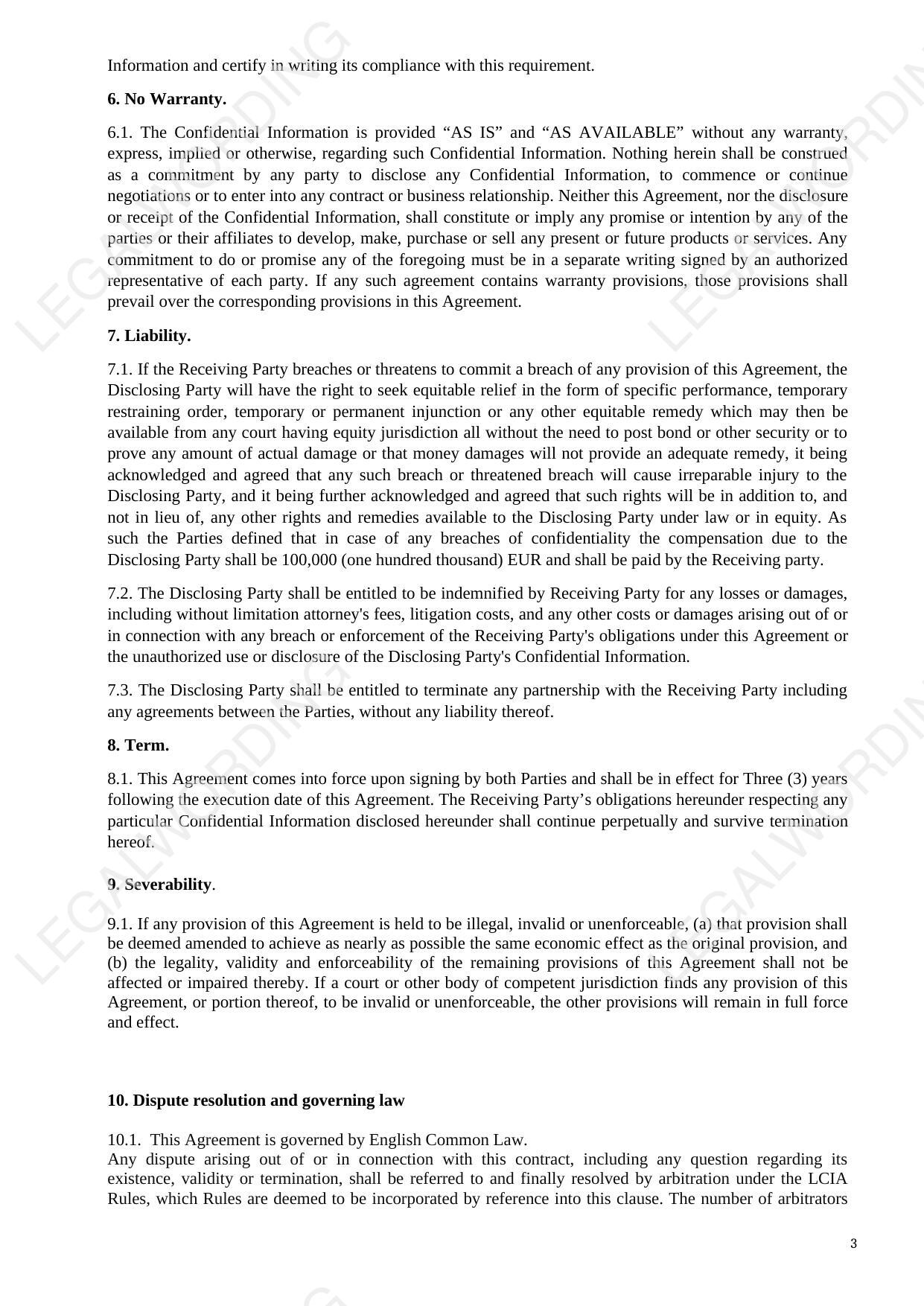 Оговорка о разрешении спора: арбитраж в Лондоне.