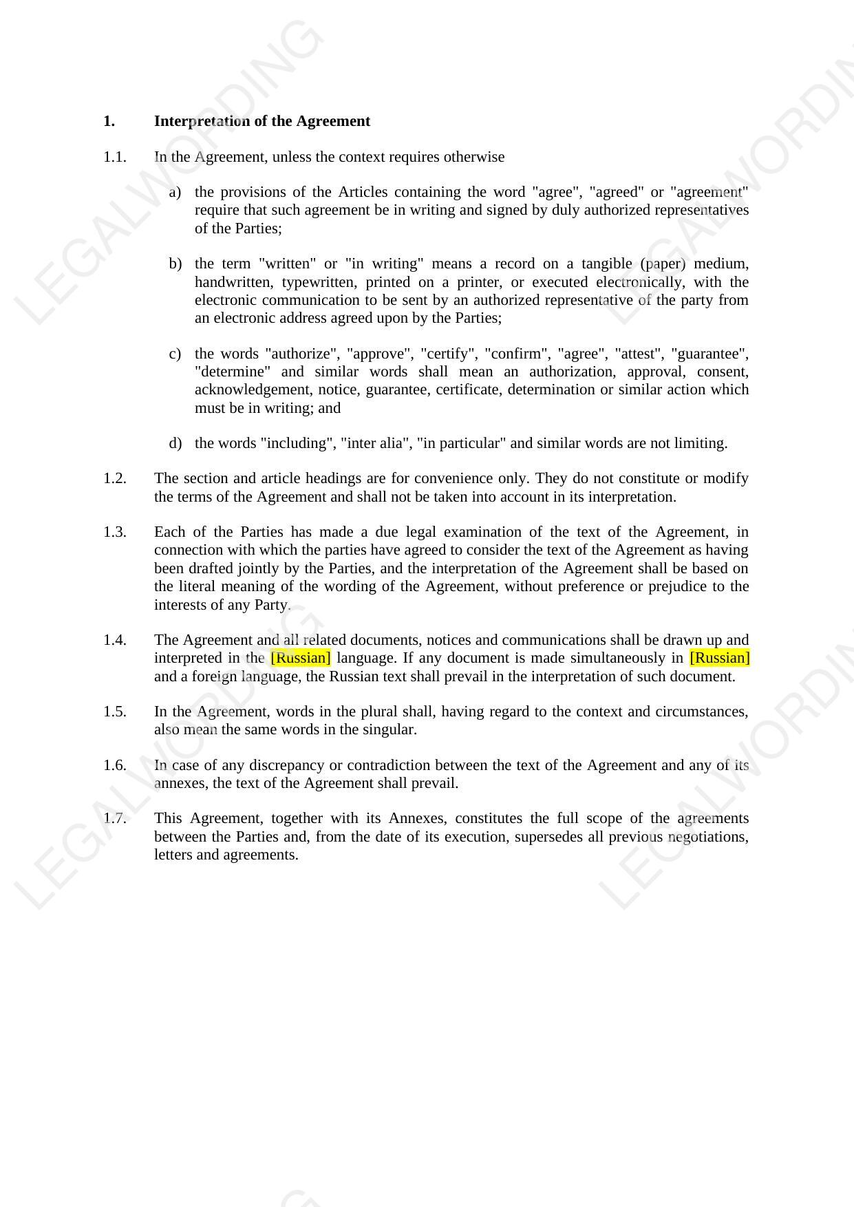 Если стороны хотят уточнить и дополнить принципы рассматриваемой статьи, они могут включит в свой договор статью о толкования текста его положений.