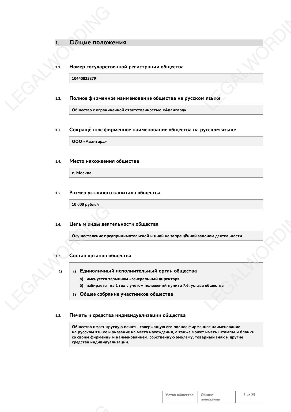 Шаблон устава, разработанный с применением принципов Legal Design.