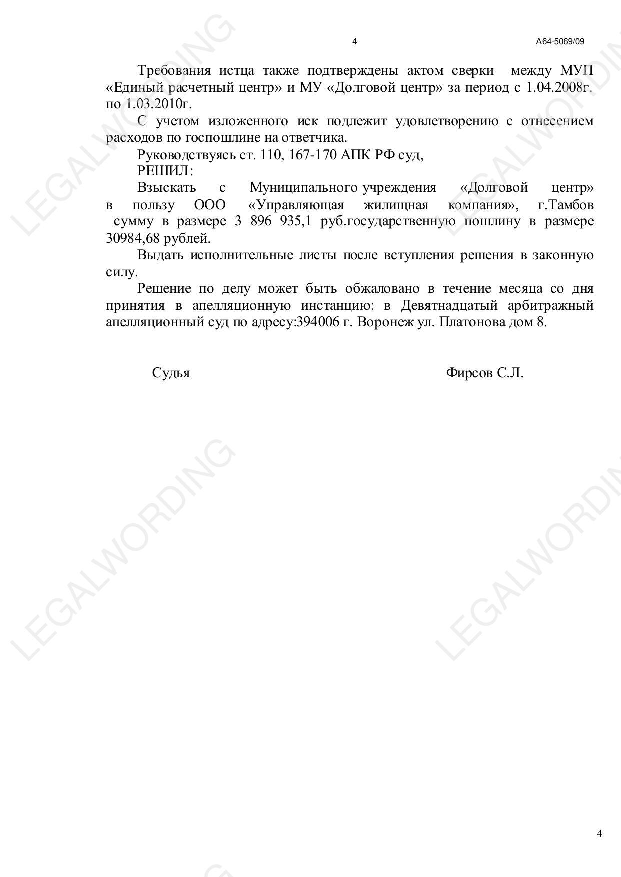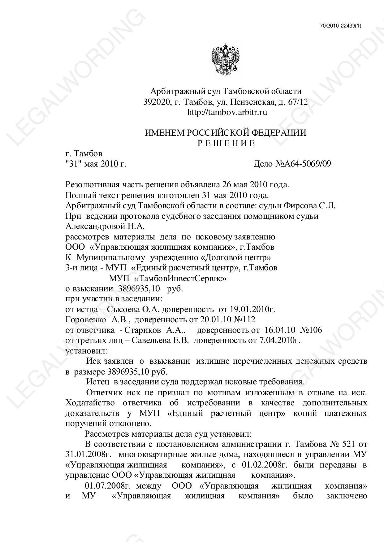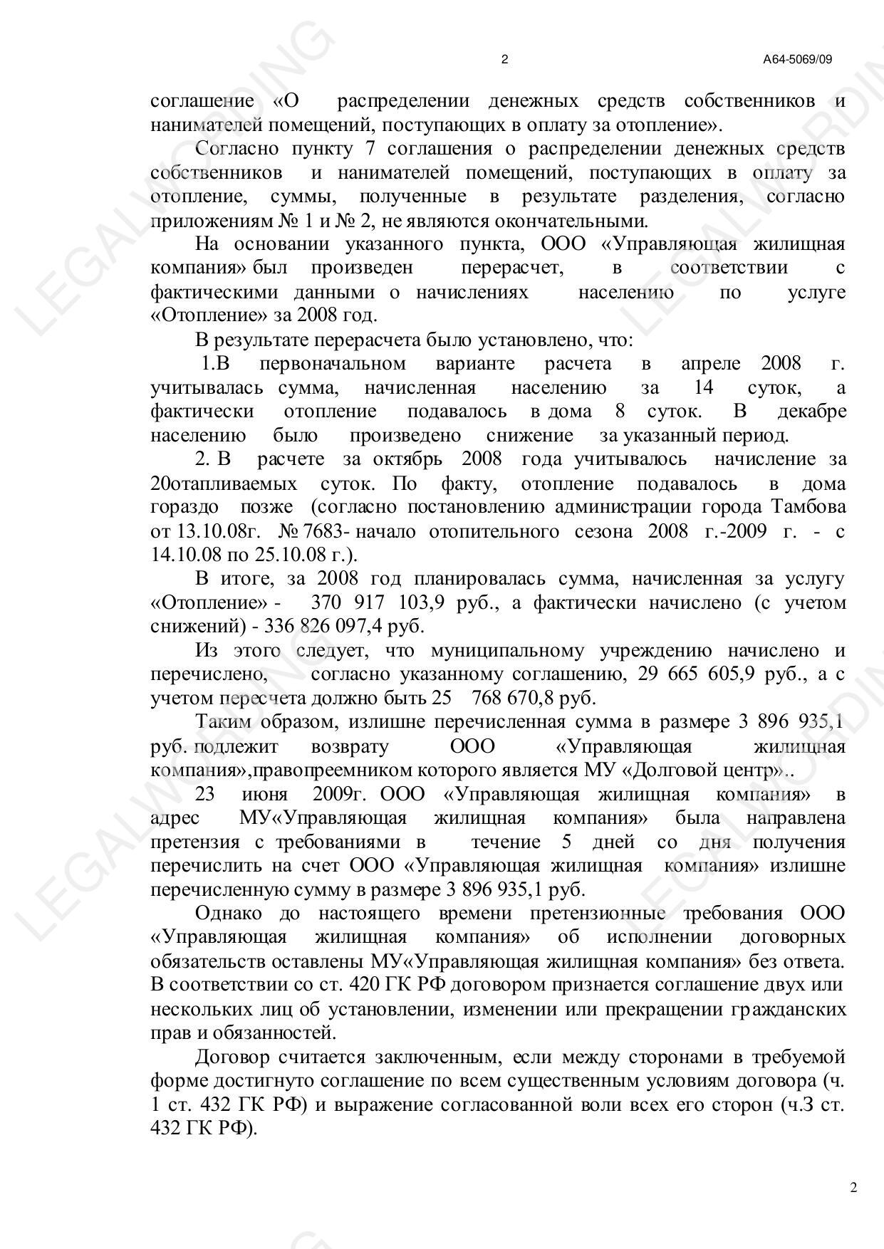 ООО "Управляющая жилищная компания" обратилось к МУ "Управляющая жилищная компания с иском о взыскании излишне перечисленных за отопление в 2008 году денежных средств в размере 3 896 935,10 руб.