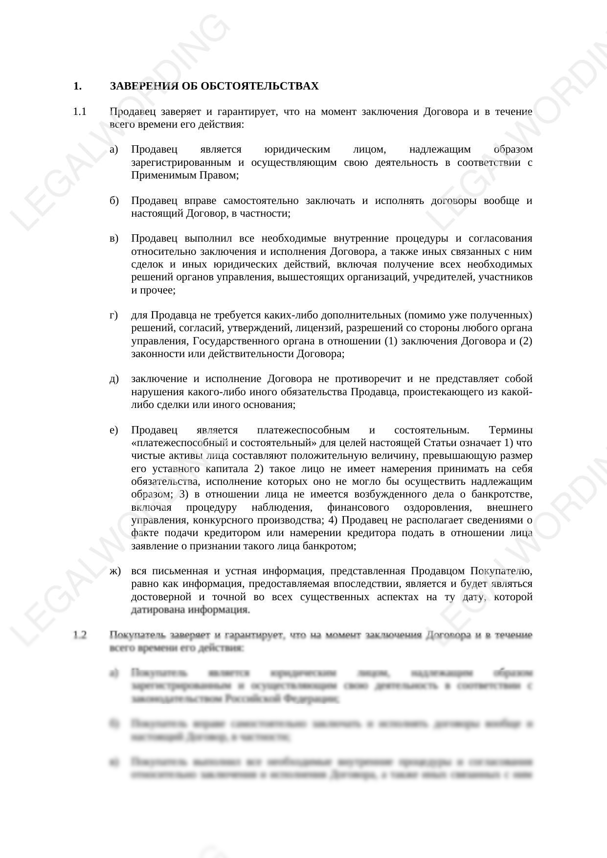 Это не только способствует защите интересов обеих сторон, но и созданию более устойчивых и надежных договорных отношений. Предлагаемая статья может быть использована в договоре купли-продажи и включает как заверения продавца, так и покупателя.