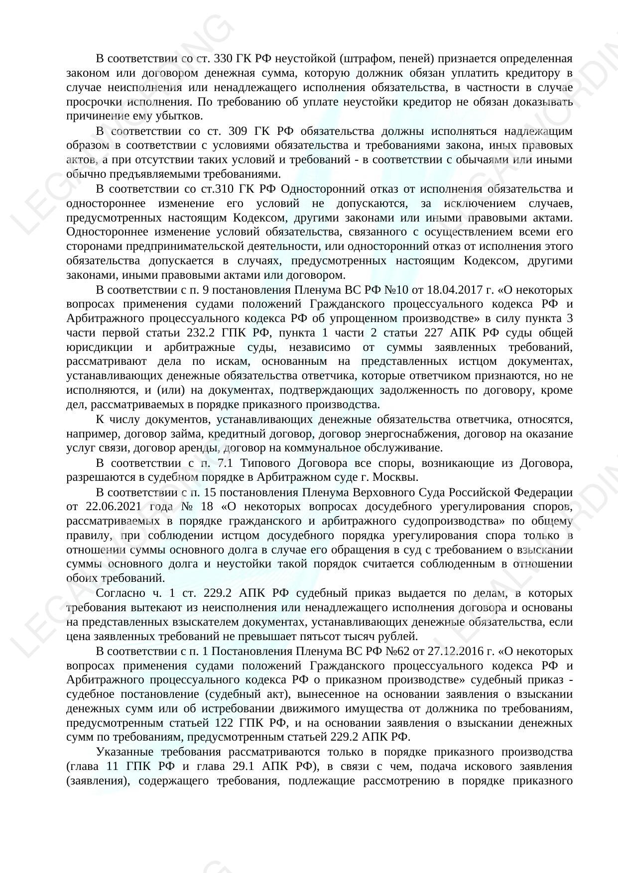 Заявление Управляющей компании в Арбитражный суд к собственнику нежилого помещения о взыскании неустойки за ранее взысканную задолженность за услуги управляющей компании по договору управления общим имуществом.