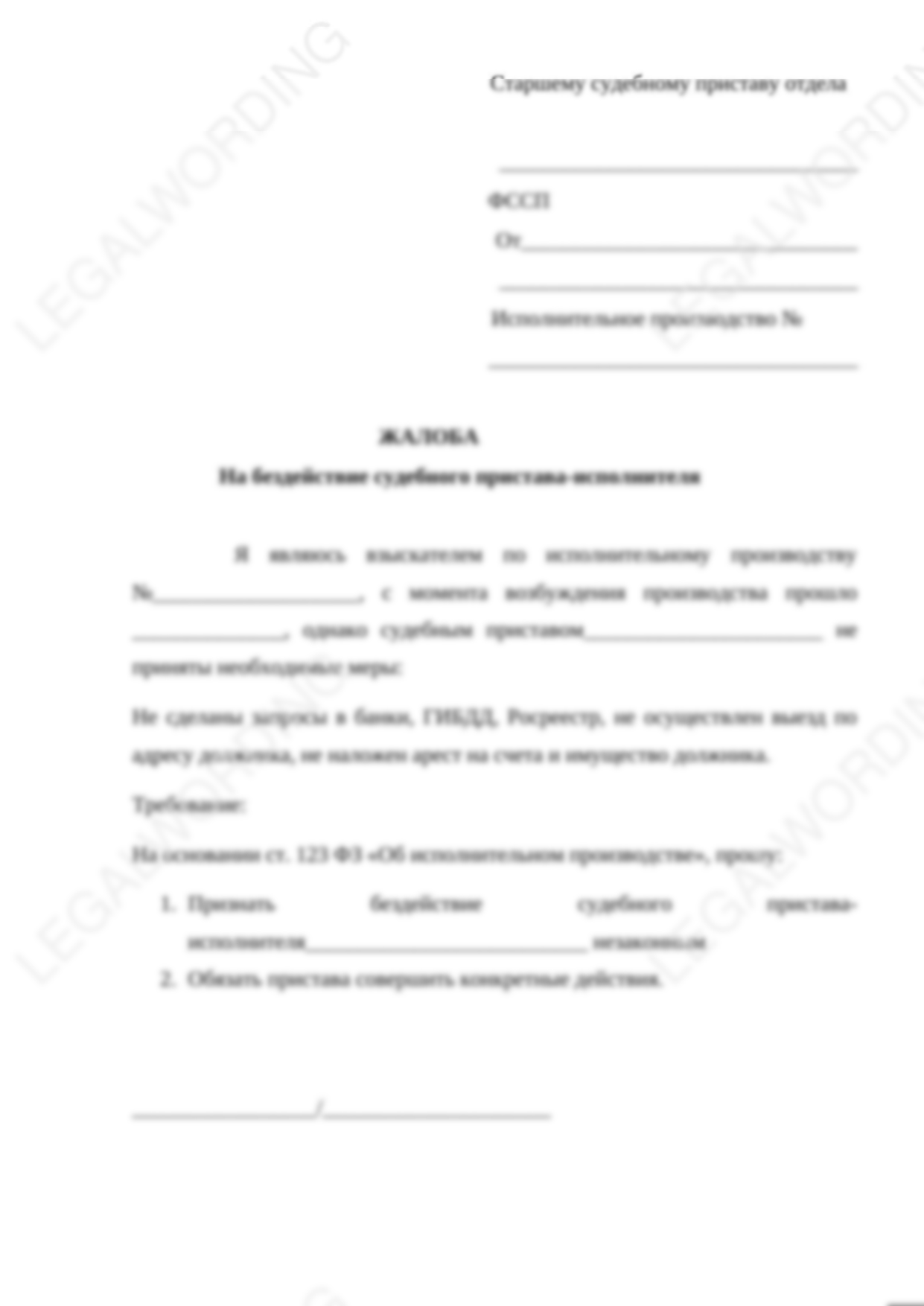 Жалоба готова, необходимо вписать ручкой или впечатать личные данные и подать ее в ФССП через Госуслуги или в бумажном виде в отдел ФССП.